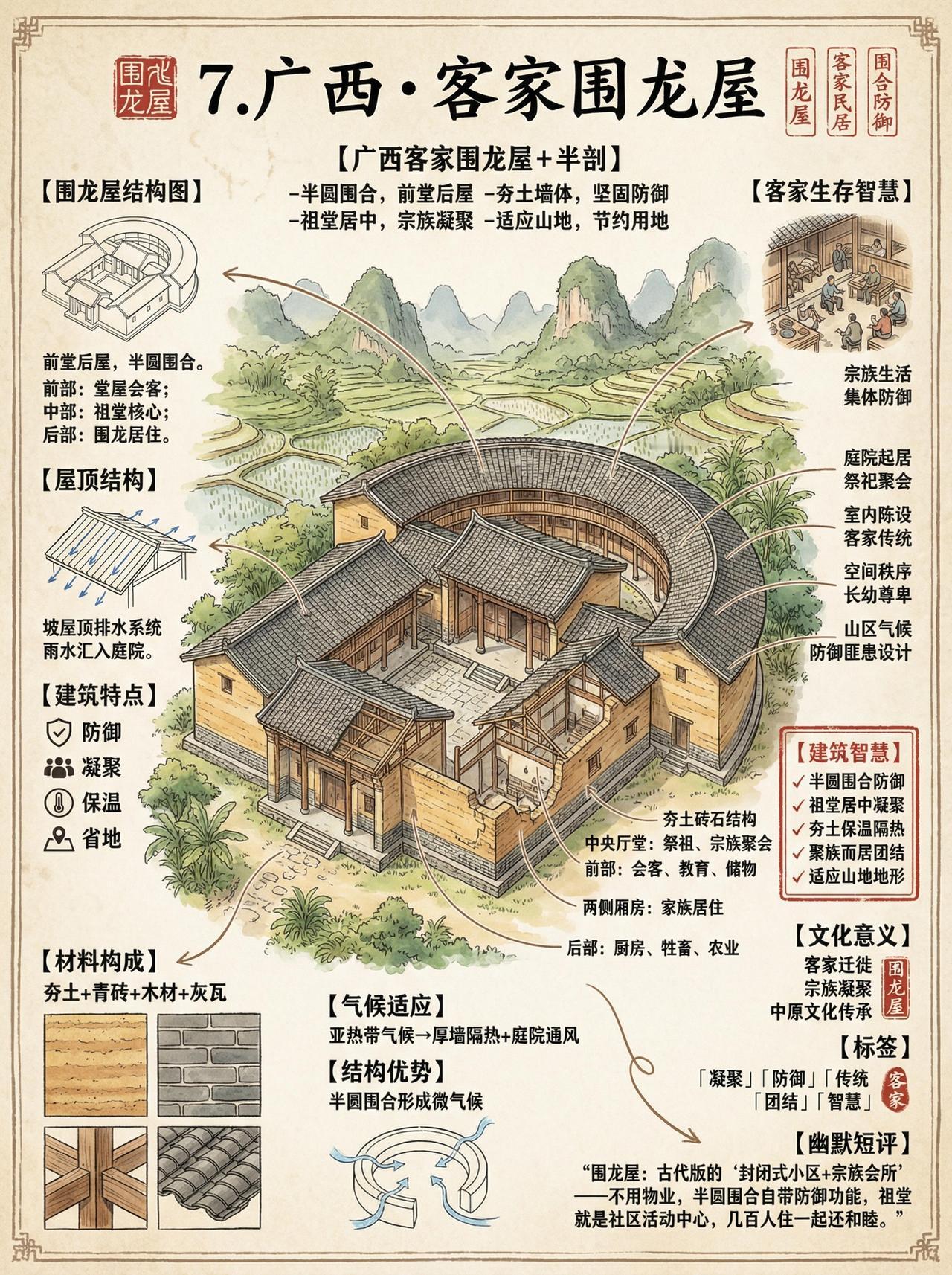 🏠 广西围龙屋,是半圆围合的客家凝聚,祖堂居中,把中原文化在岭南扎了根;