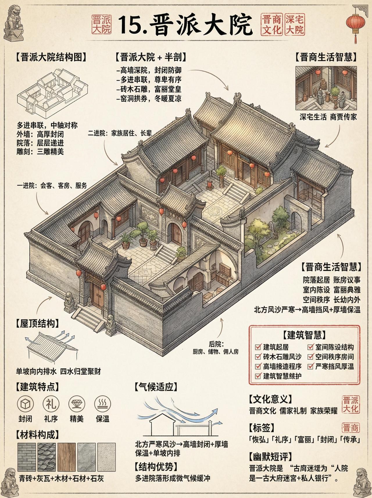 🏠 晋派大院,是高墙深院的晋商辉煌,三雕精美,一进一进都是「汇通天下」的底气;