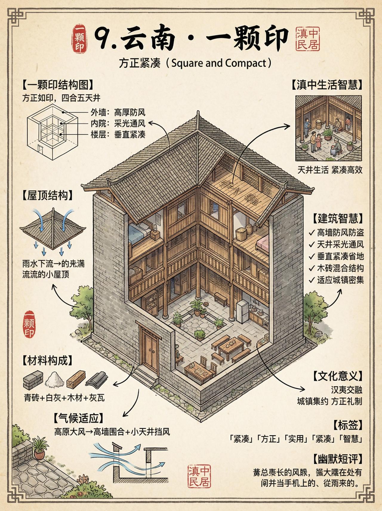 🏠 云南一颗印,是方正紧凑的滇中智慧,高墙围合,在高原大风里守着紧凑的烟火;