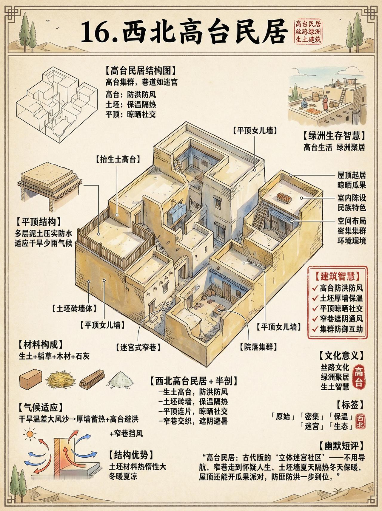 🏠 西北高台民居,是丝路绿洲的生土迷宫,平顶连片,在风沙里守着绿洲人家的烟火;