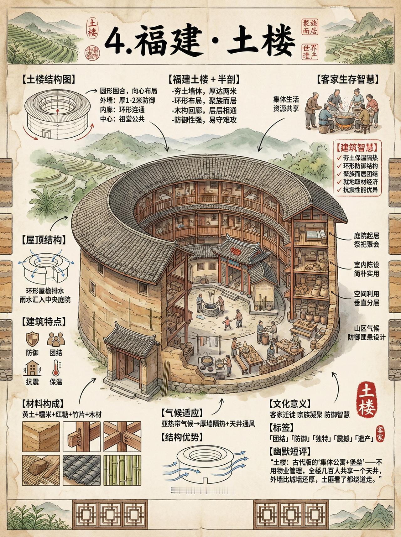 🏠 福建土楼,是聚族而居的东方城堡,环形夯墙,把客家人的乡愁圈成了世界遗产;
