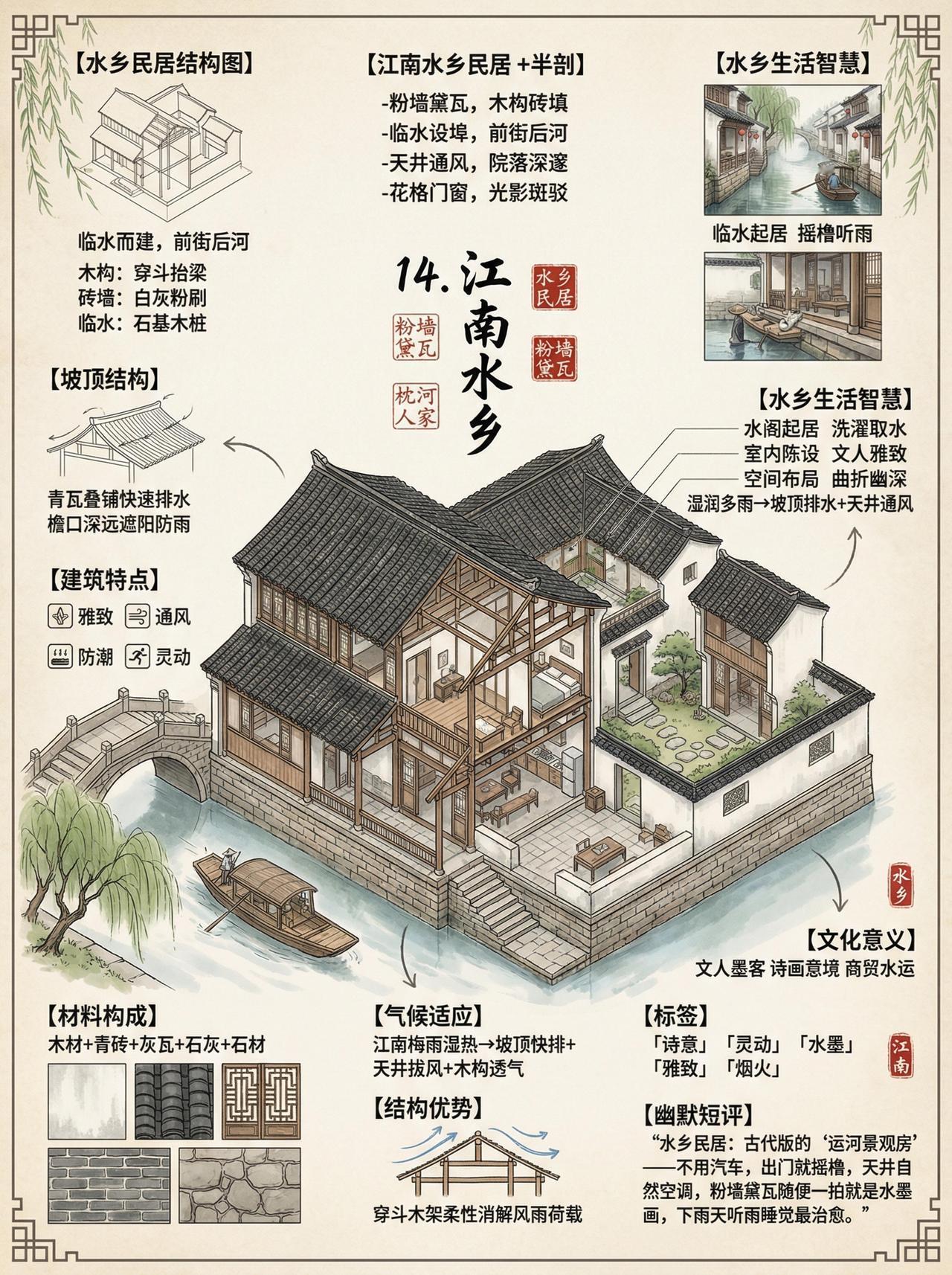 🏠 江南水乡民居,是前街后河的烟火诗意,粉墙黛瓦,摇橹船里藏着整个江南的温柔;