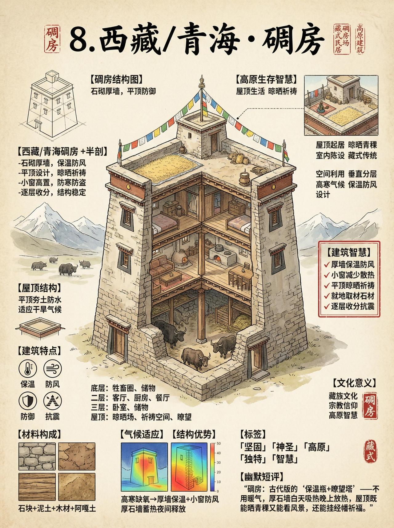 🏠 西藏碉房,是石砌厚墙的高原守护,平顶晒粮,在雪域高原撑起了藏族人家的信仰;