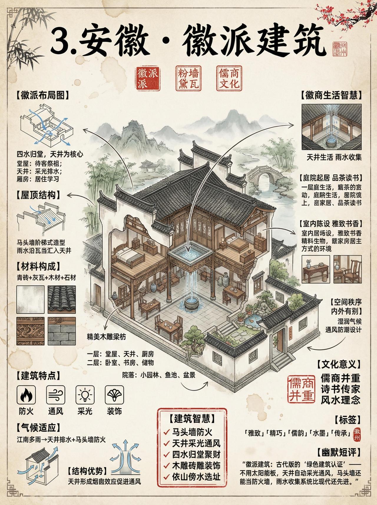 🏠 徽派马头墙,是江南烟雨里的水墨诗意,四水归堂,藏着徽商的儒商风骨;