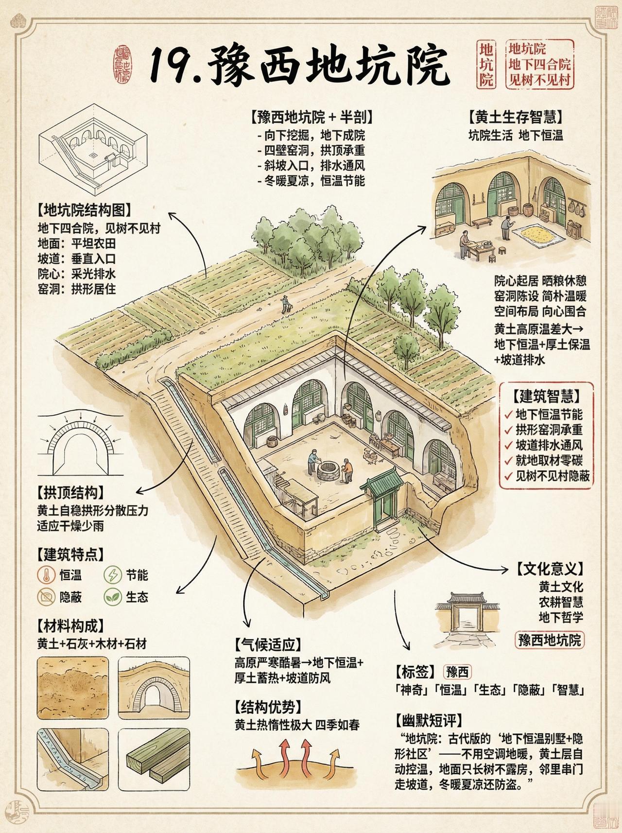 🏠 豫西地坑院,是见树不见村的地下奇迹,向下扎根,把黄土高原的温差变成了天然恒温;