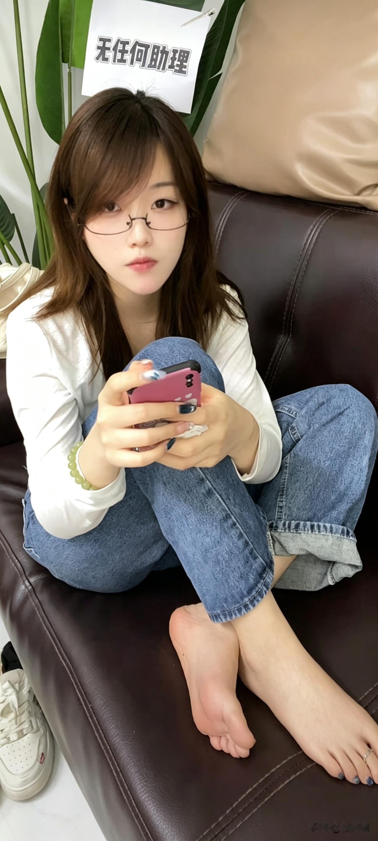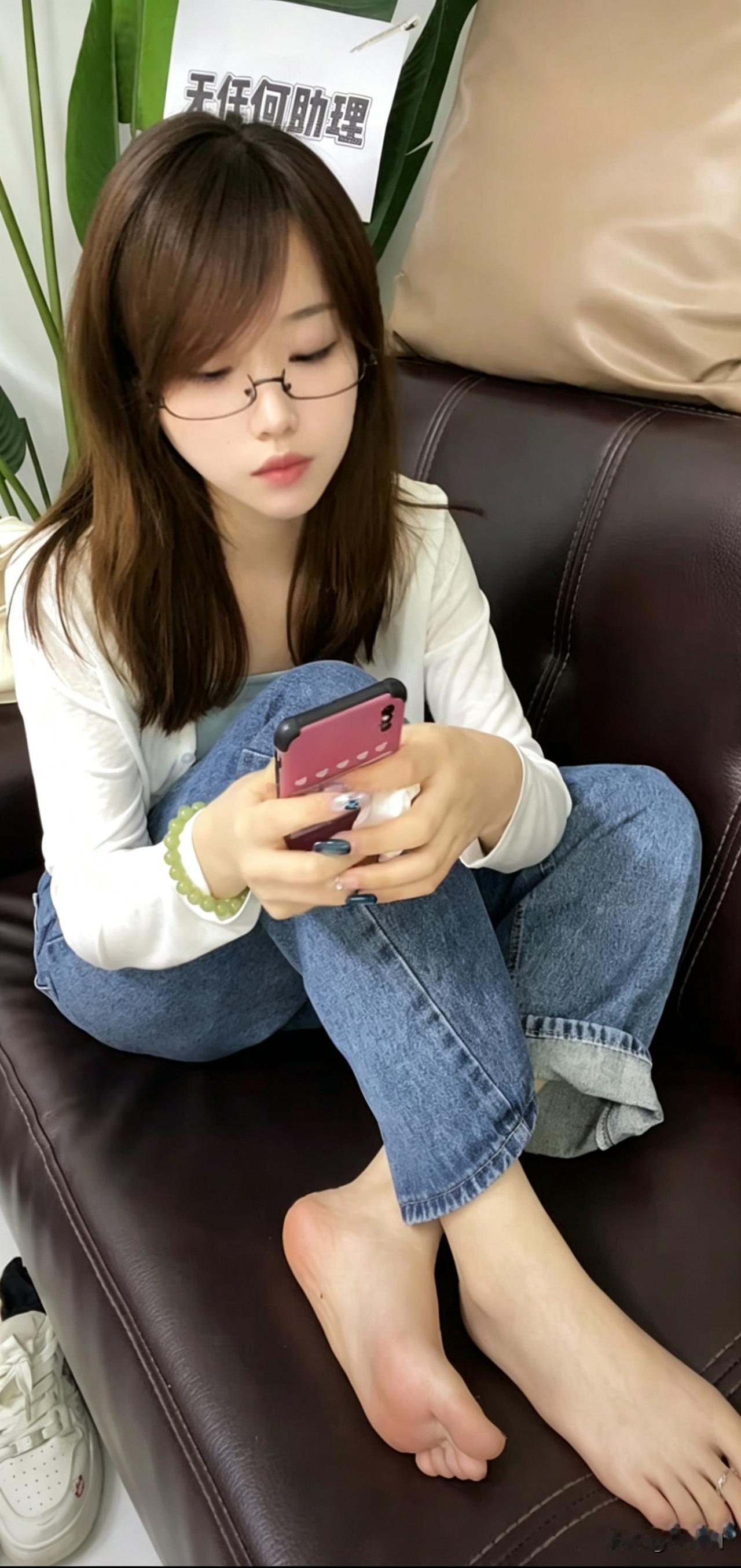 📱 沉浸在手机世界的少女,无忧无虑的午后时光。