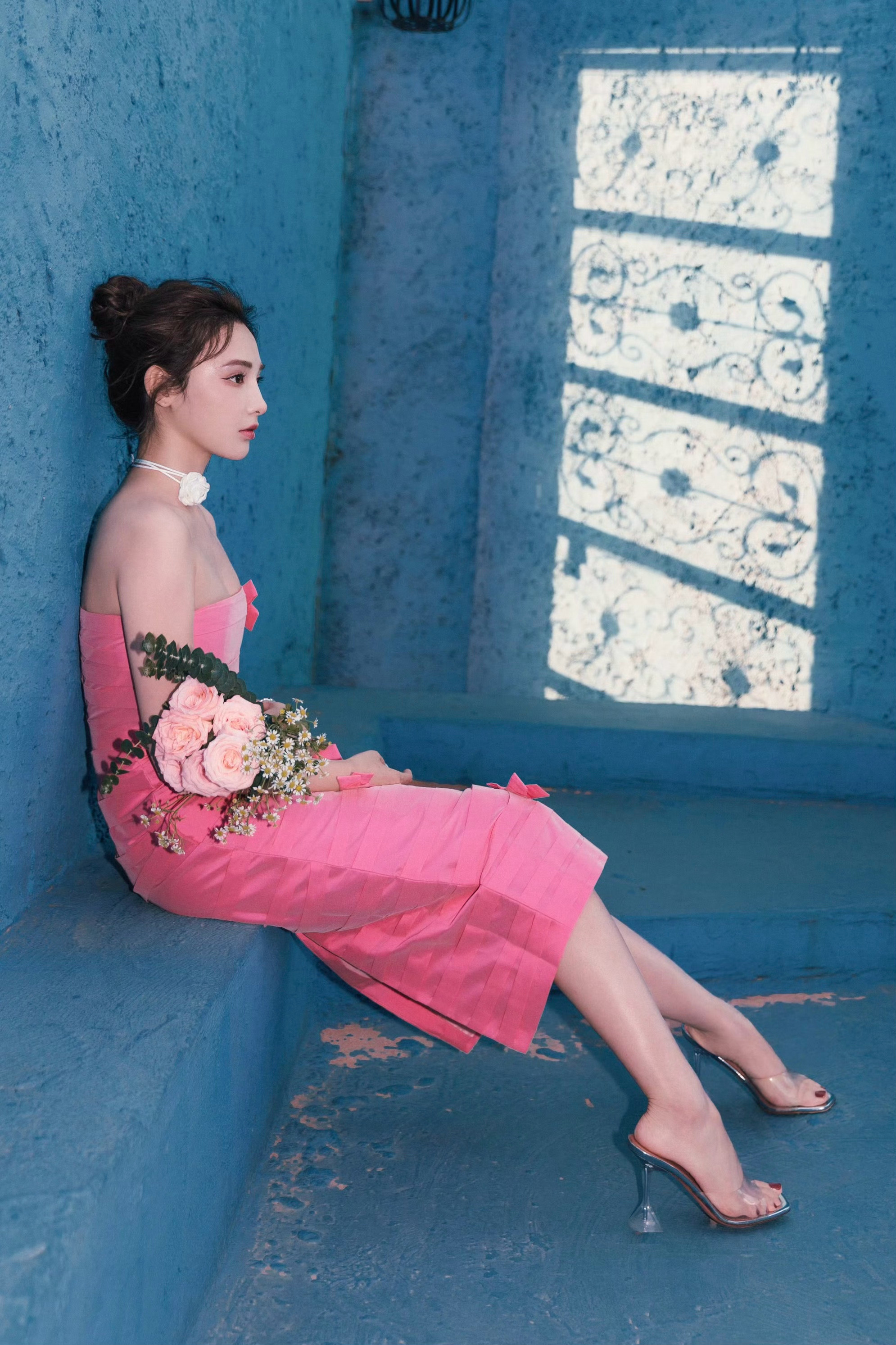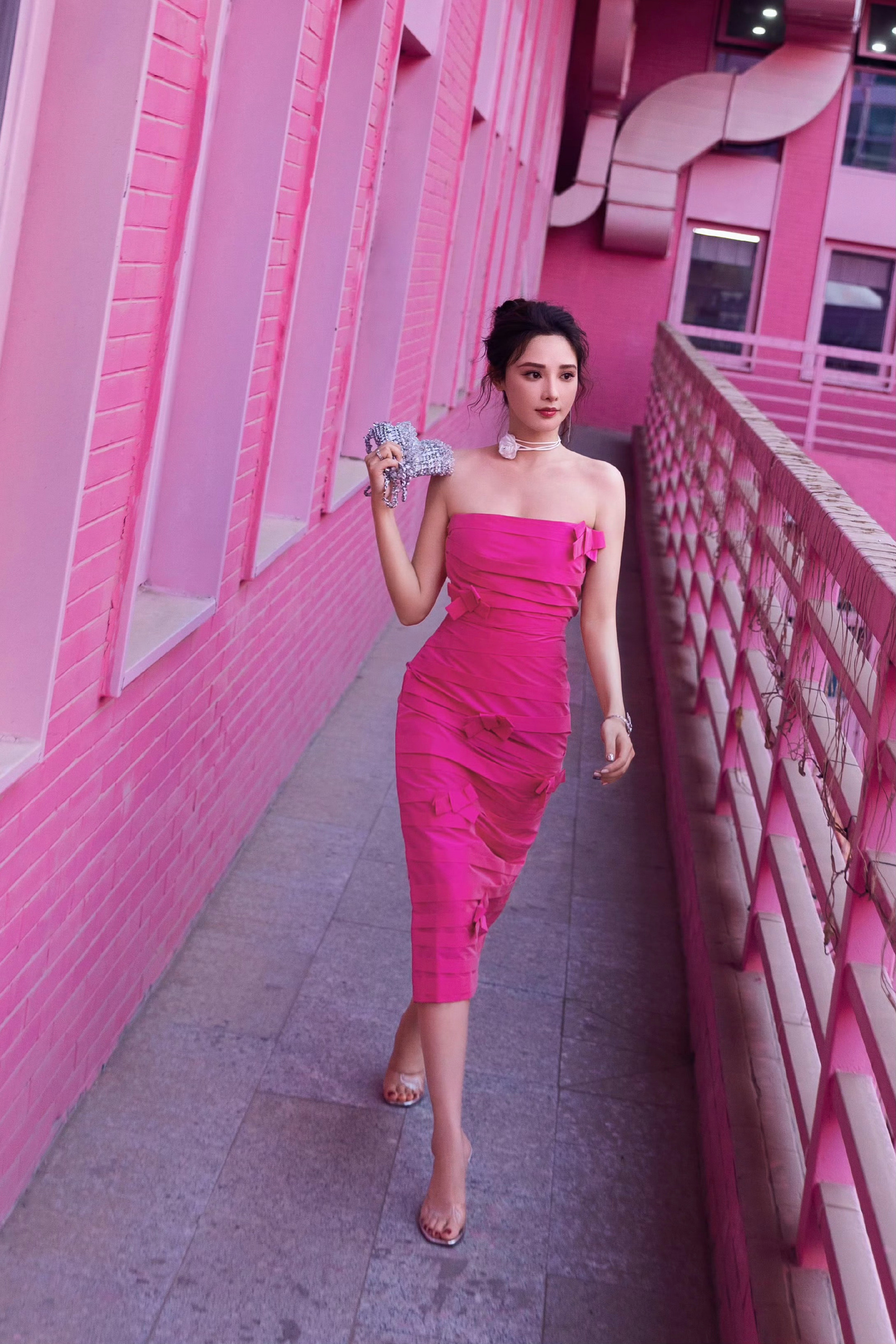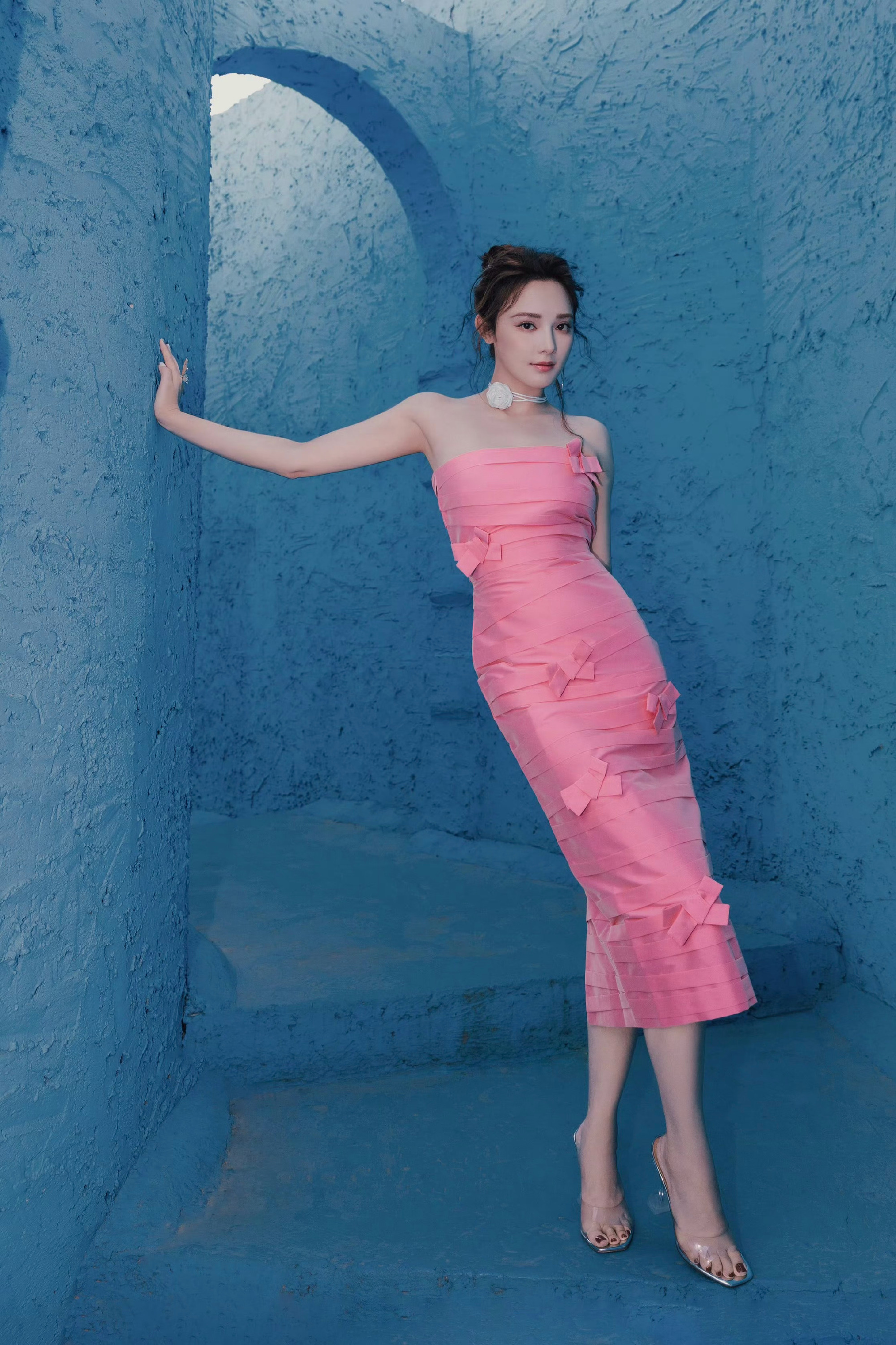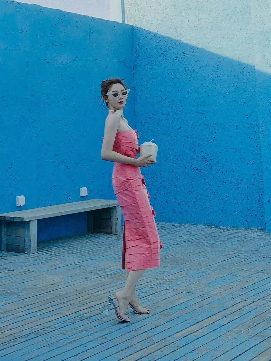 彭小苒姐妹这太过火了,玫瑰粉裙美腿的优雅穿搭。彭小苒