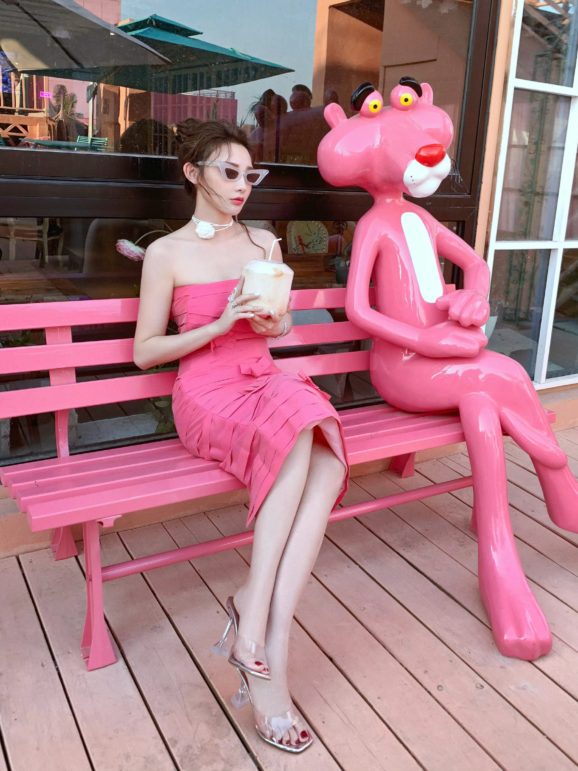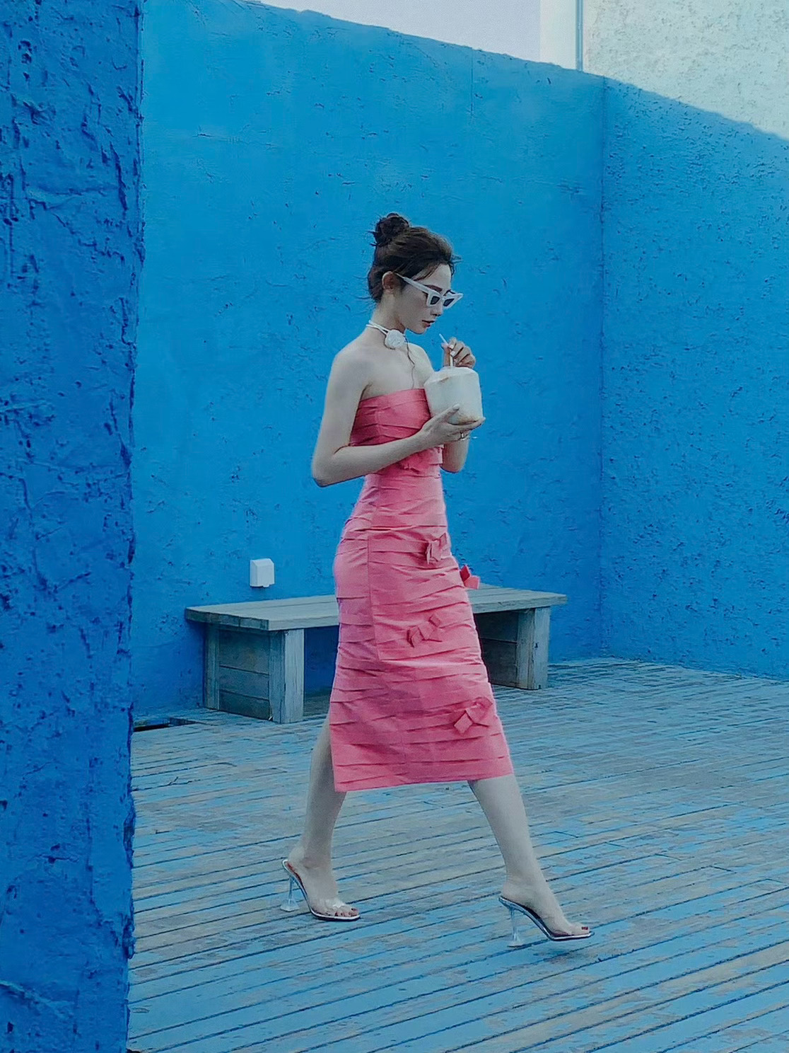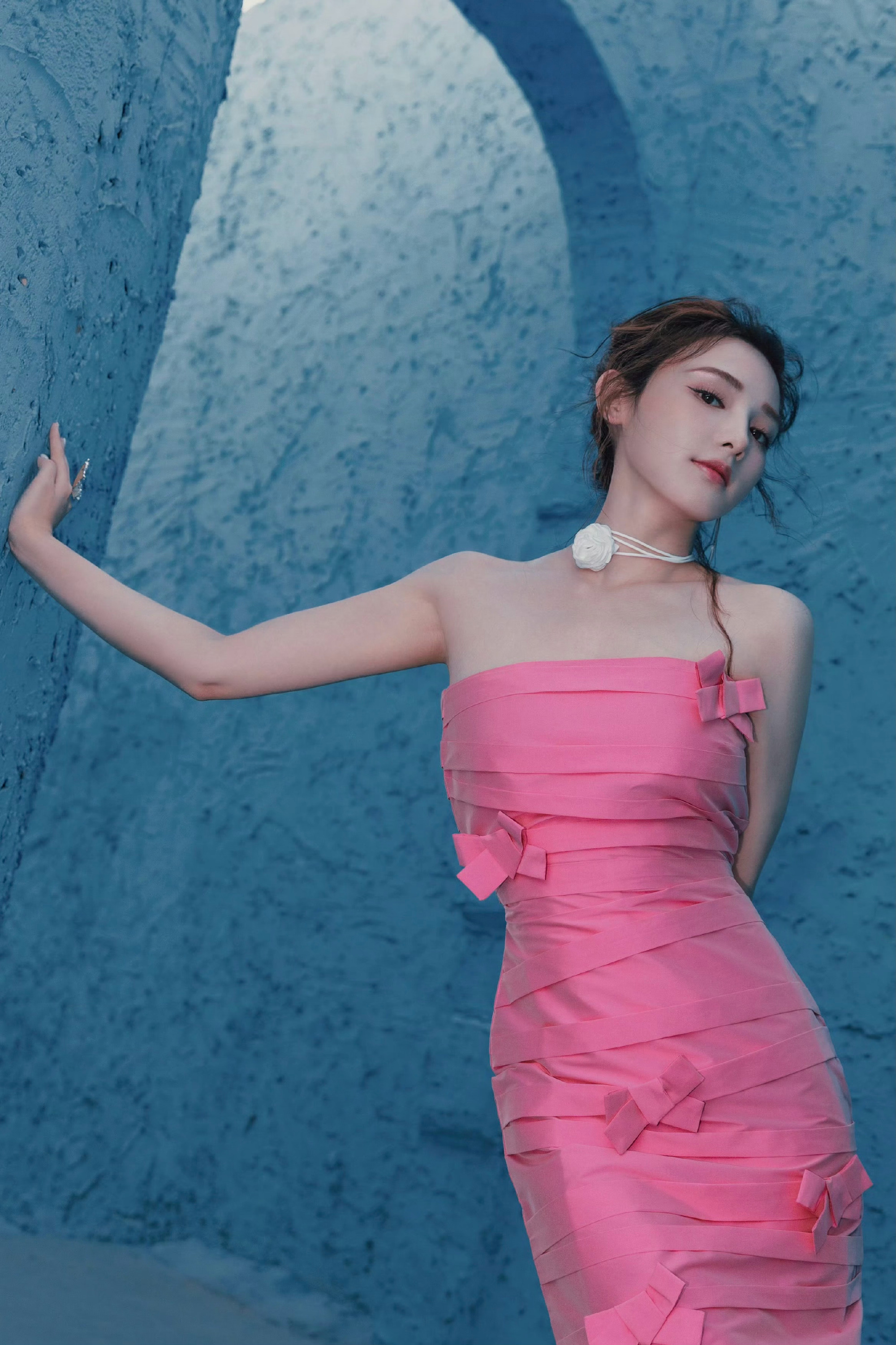 彭小苒姐妹这太过火了,玫瑰粉裙美腿的优雅穿搭。彭小苒