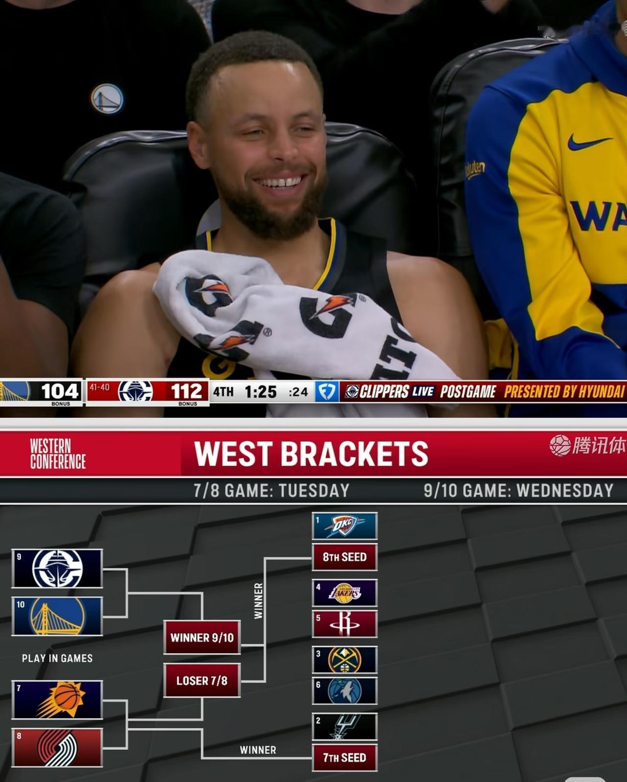 附加赛见咯 随着最后一场常规赛打完,勇士本赛季结束在了西部第十,好消息是巴特勒