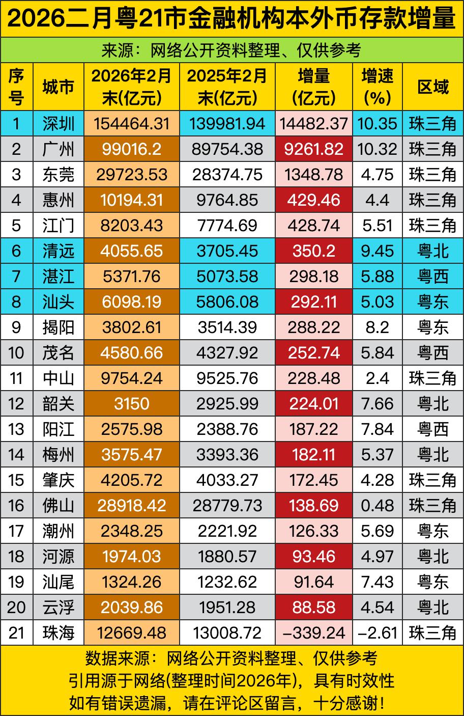 深圳14482亿、广州9261亿、东莞1348亿——这哪是外币存款增量?分明是珠