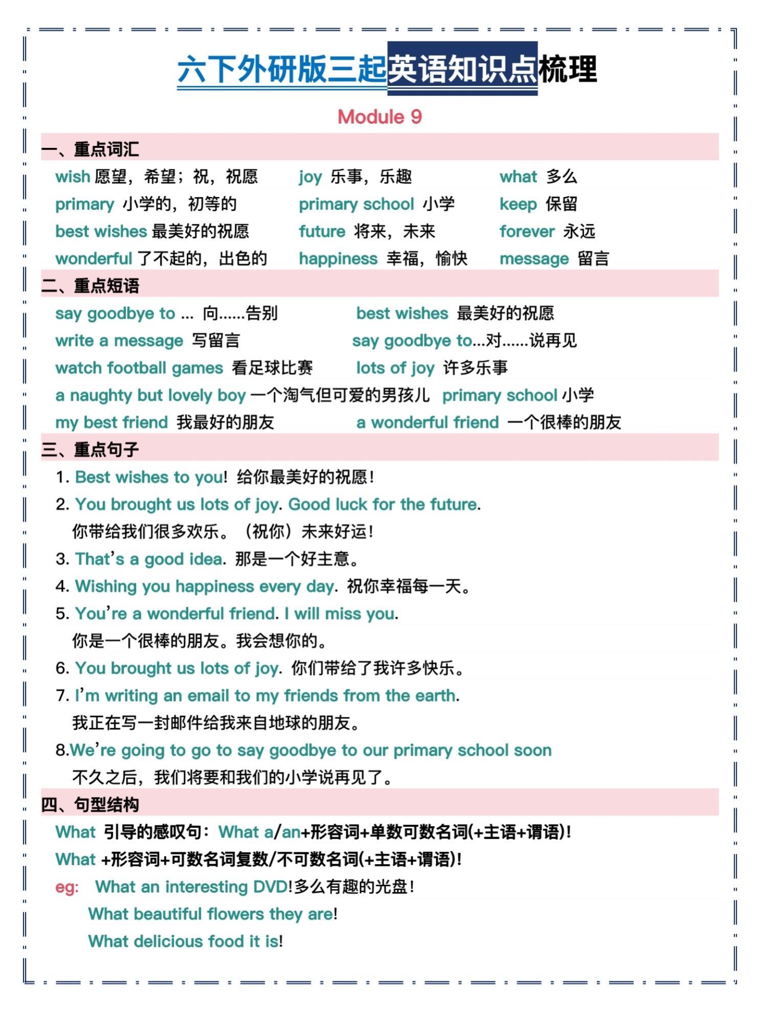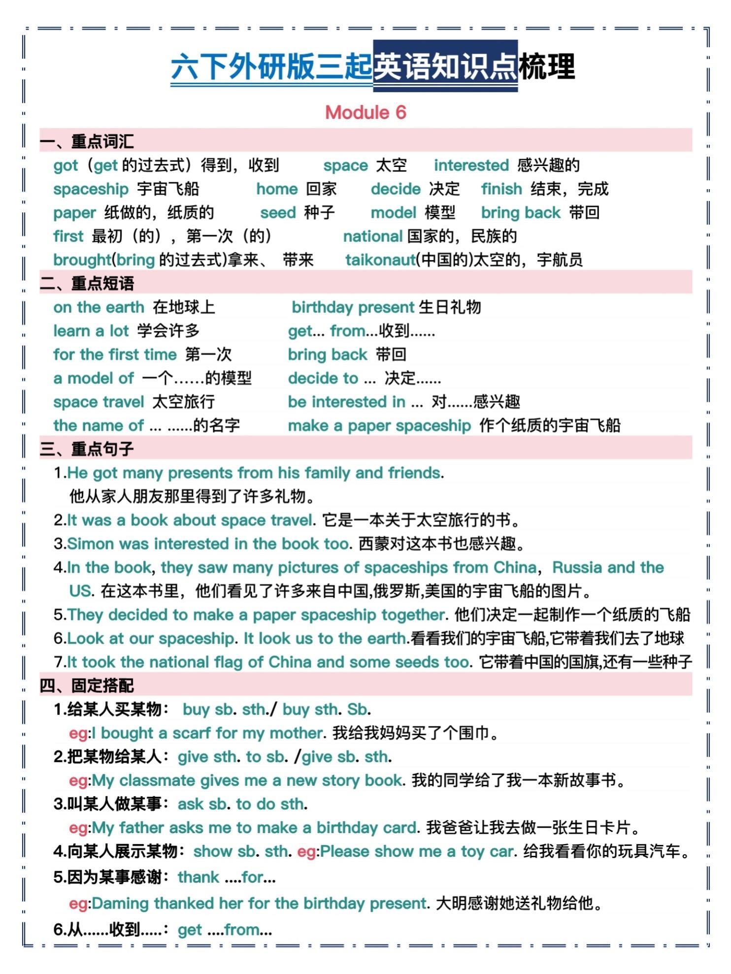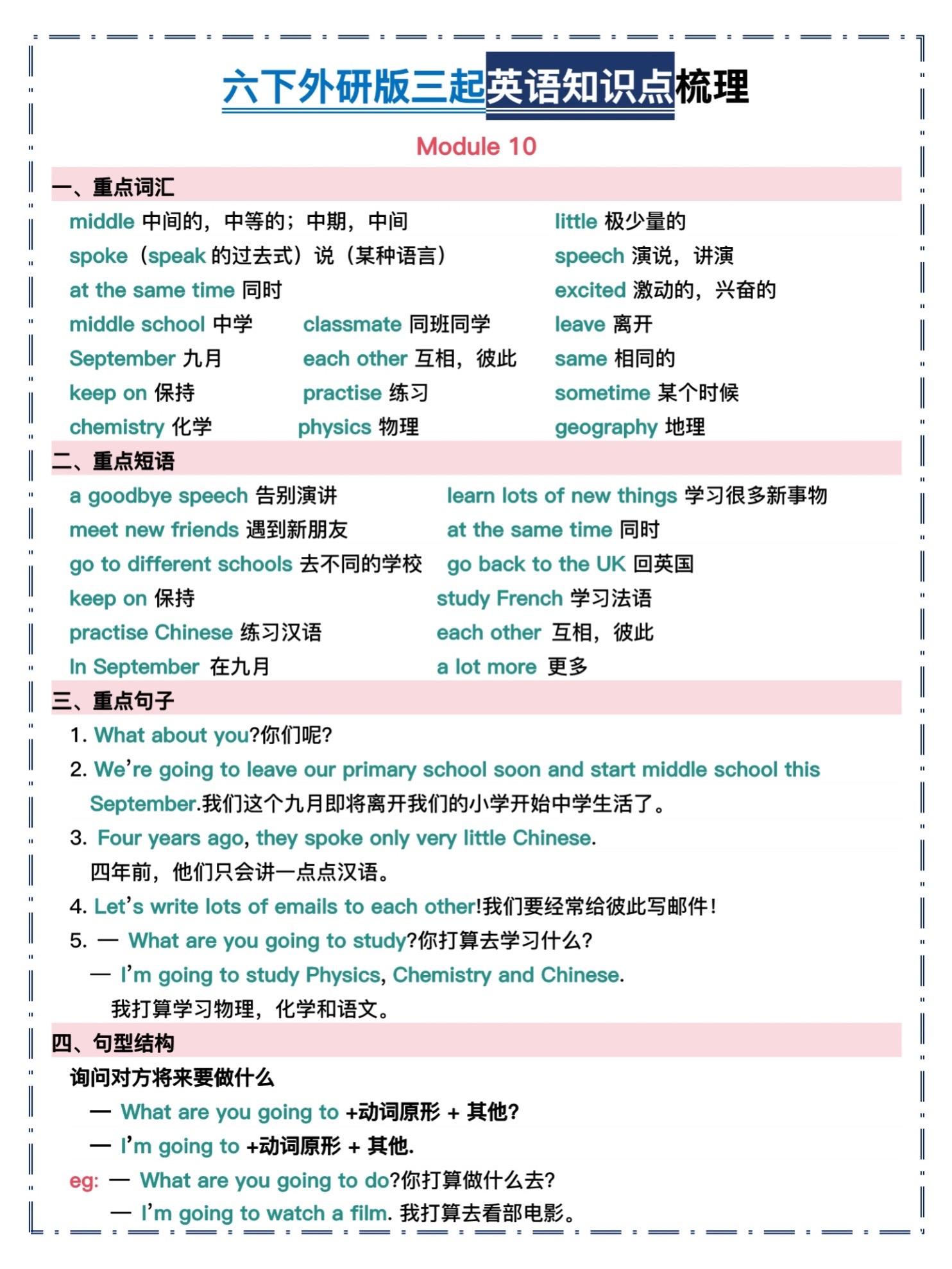 六年级下册外研版三起英语|全册知识点汇总。谁还在死磕六年级英语?