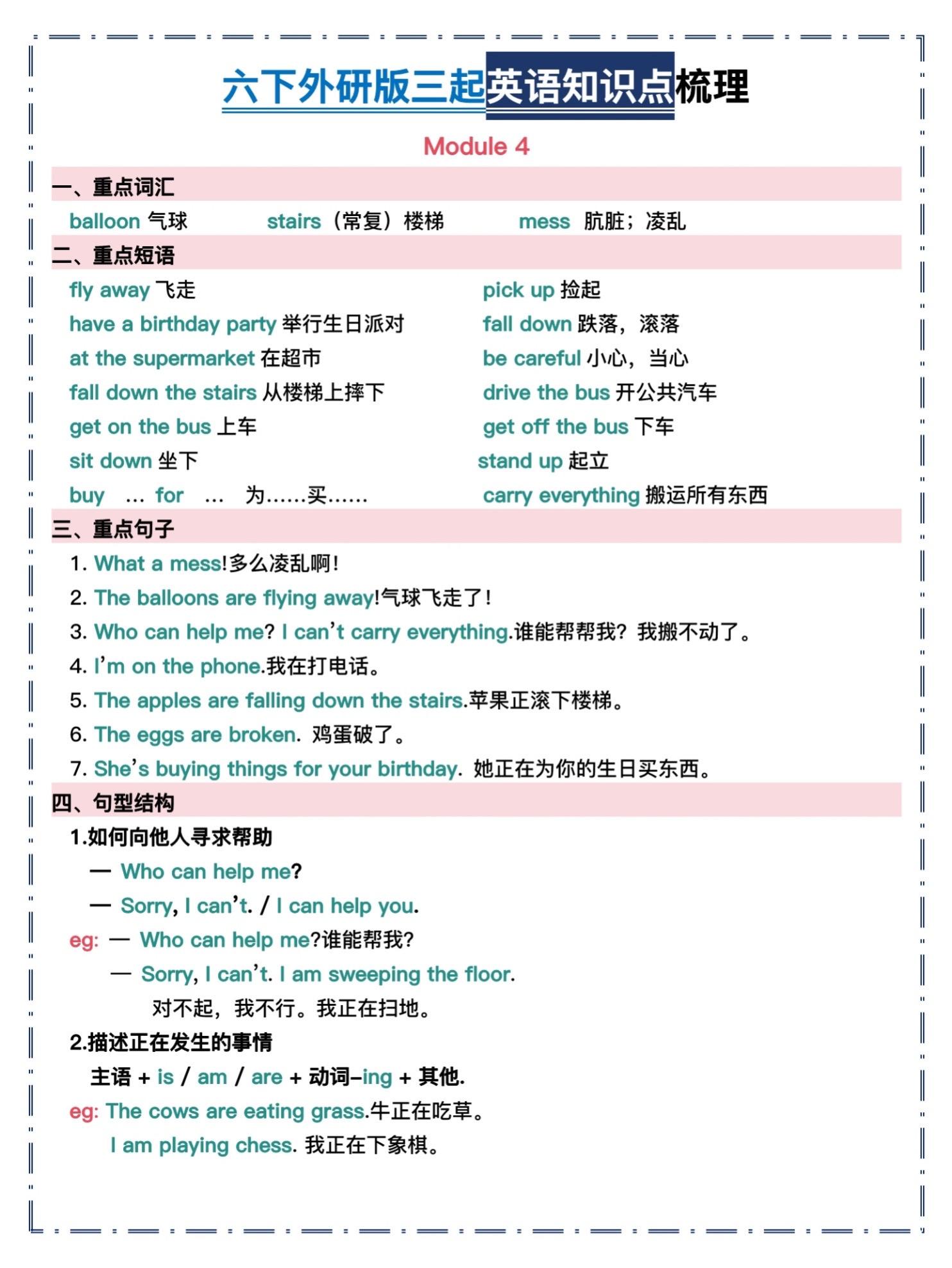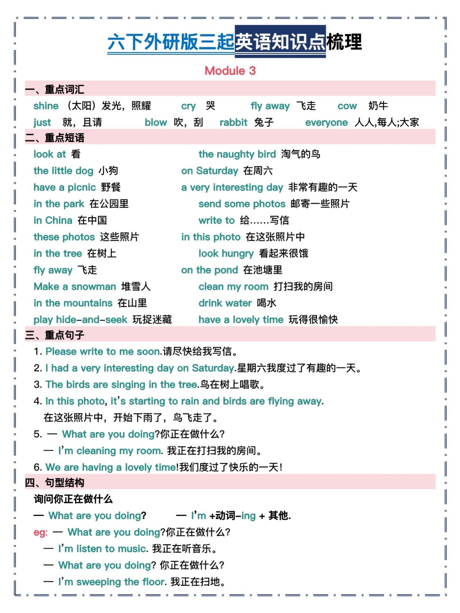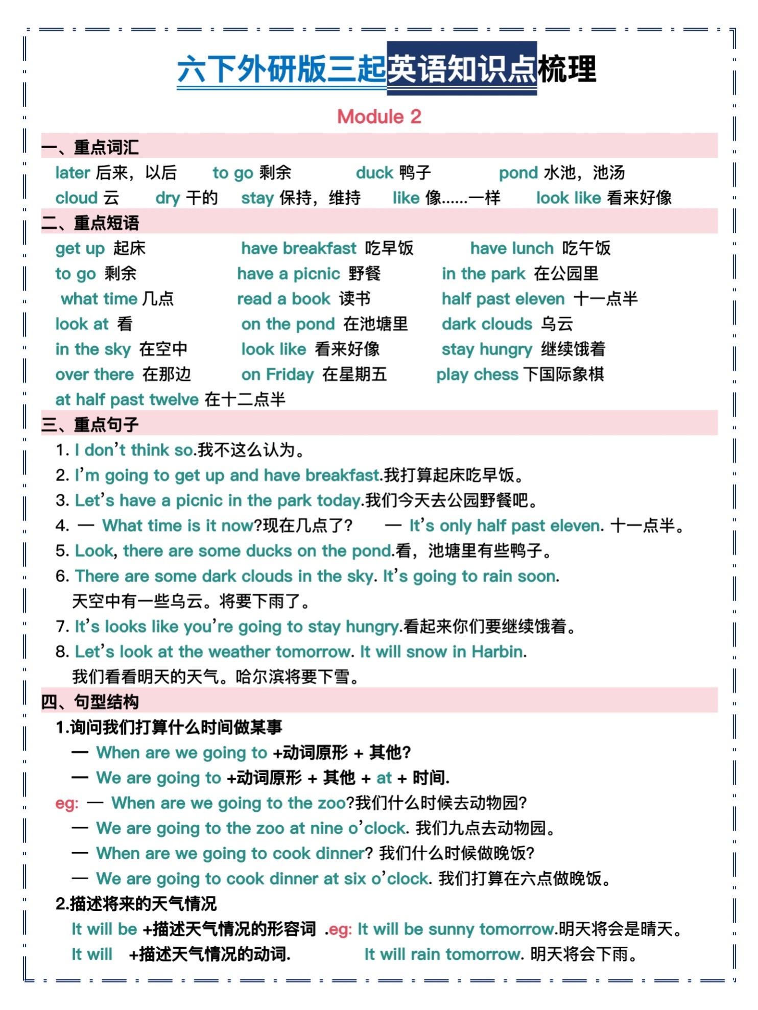 六年级下册外研版三起英语|全册知识点汇总。谁还在死磕六年级英语?