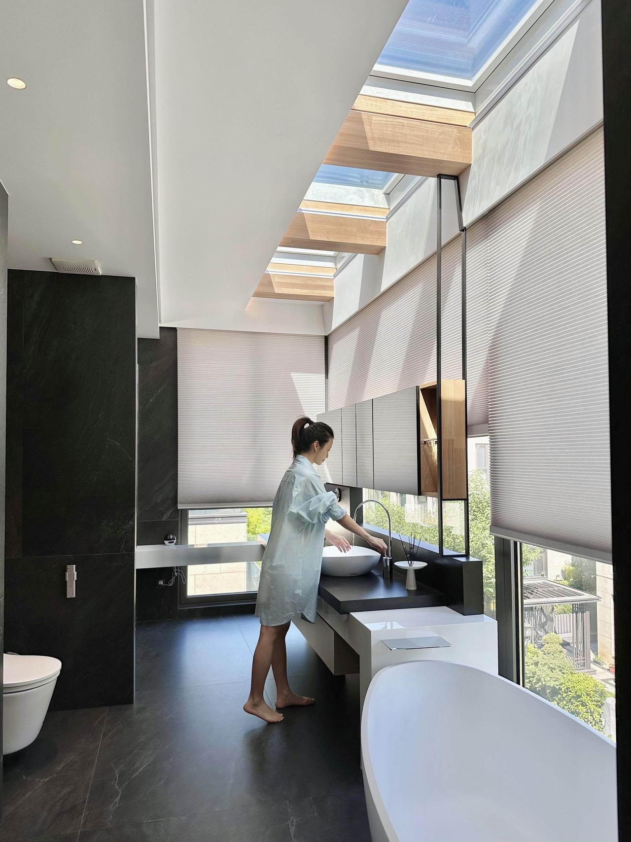 有人说500平两个人住太浪费,可我们觉得,空间不是用来填满的,是用来呼吸的。他可以在书房打游戏,我在阳光房练瑜伽,互不打扰,转头又能看到对方。