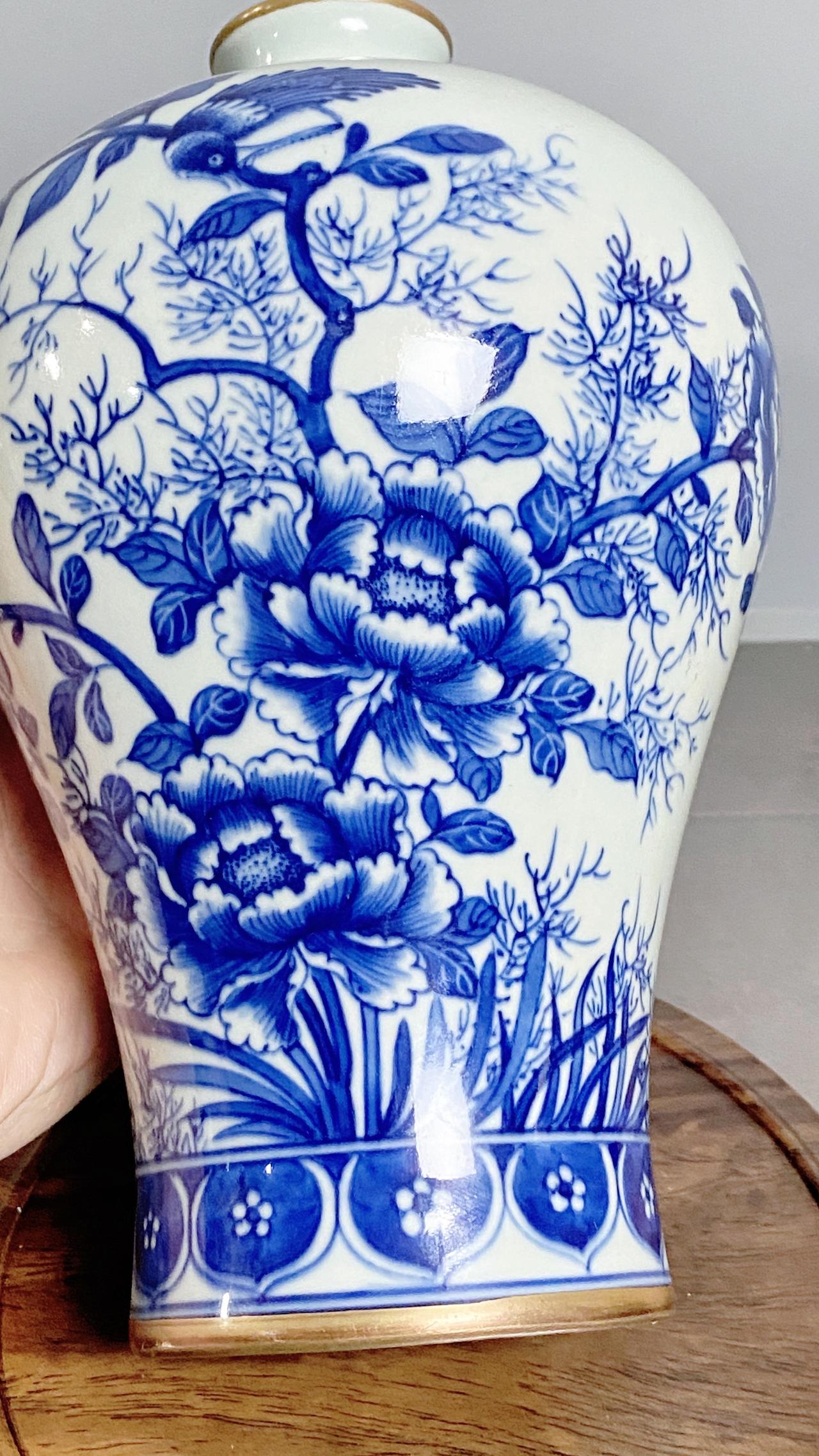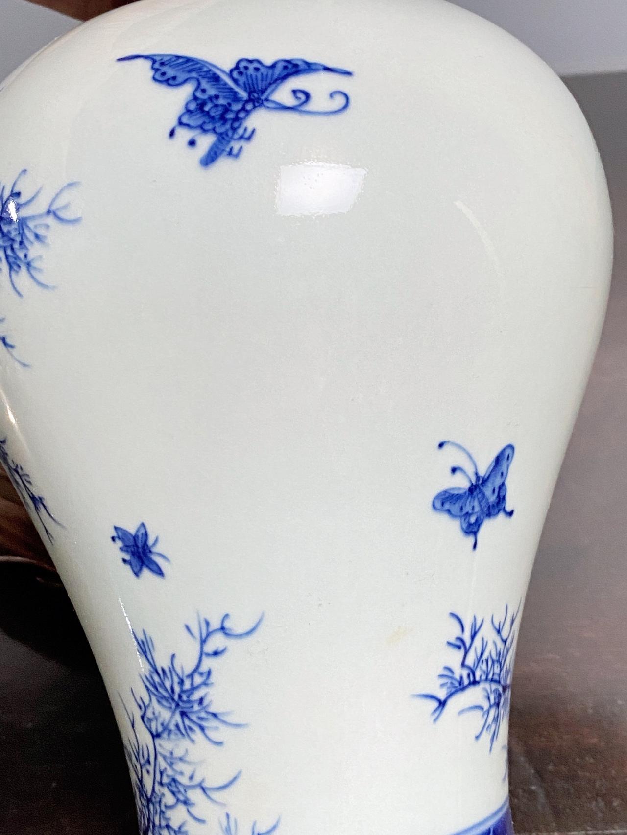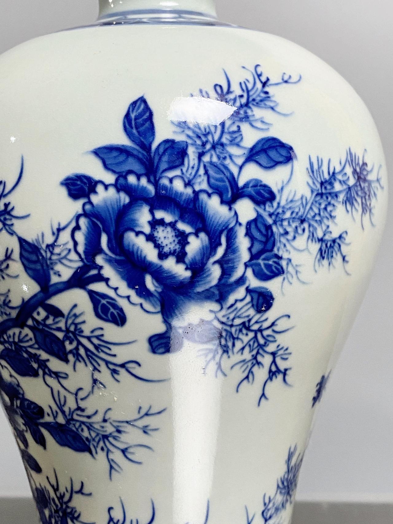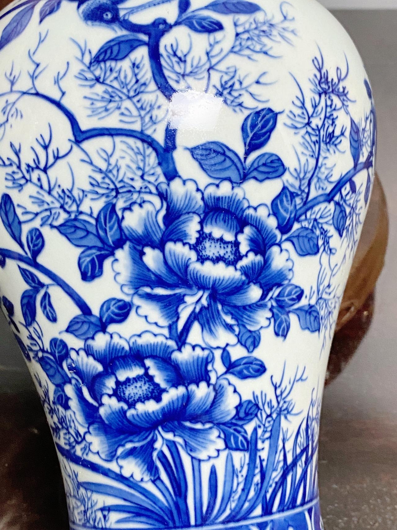 清康熙翠毛蓝花鸟纹梅瓶,典型的康熙青花发色;胎釉特征紧皮亮釉,很强的玻璃质感、大