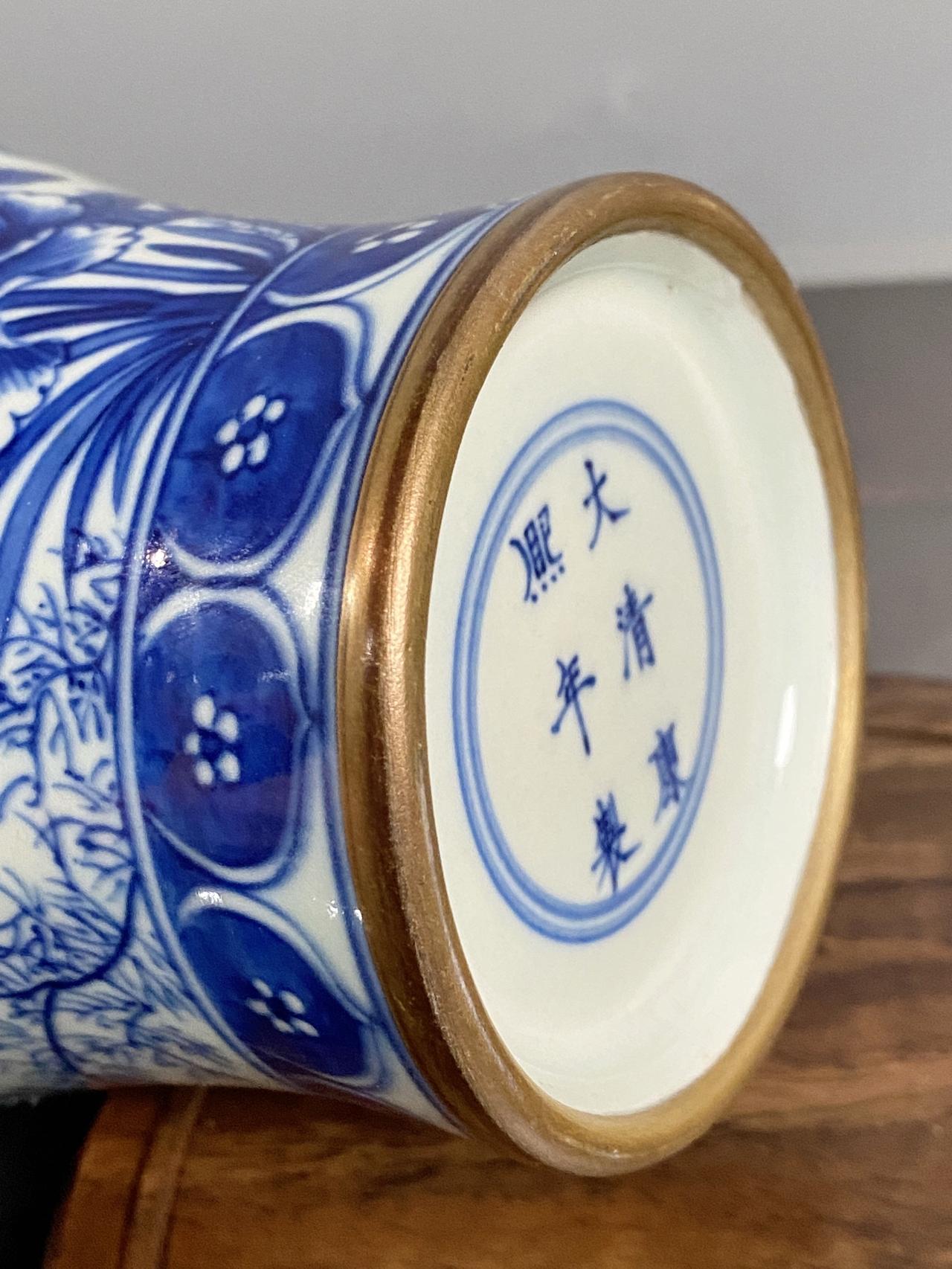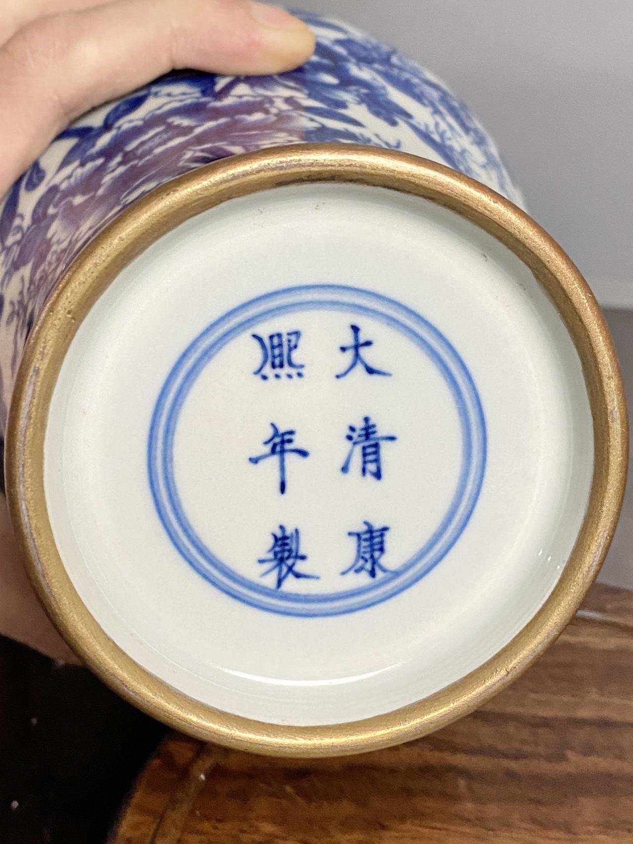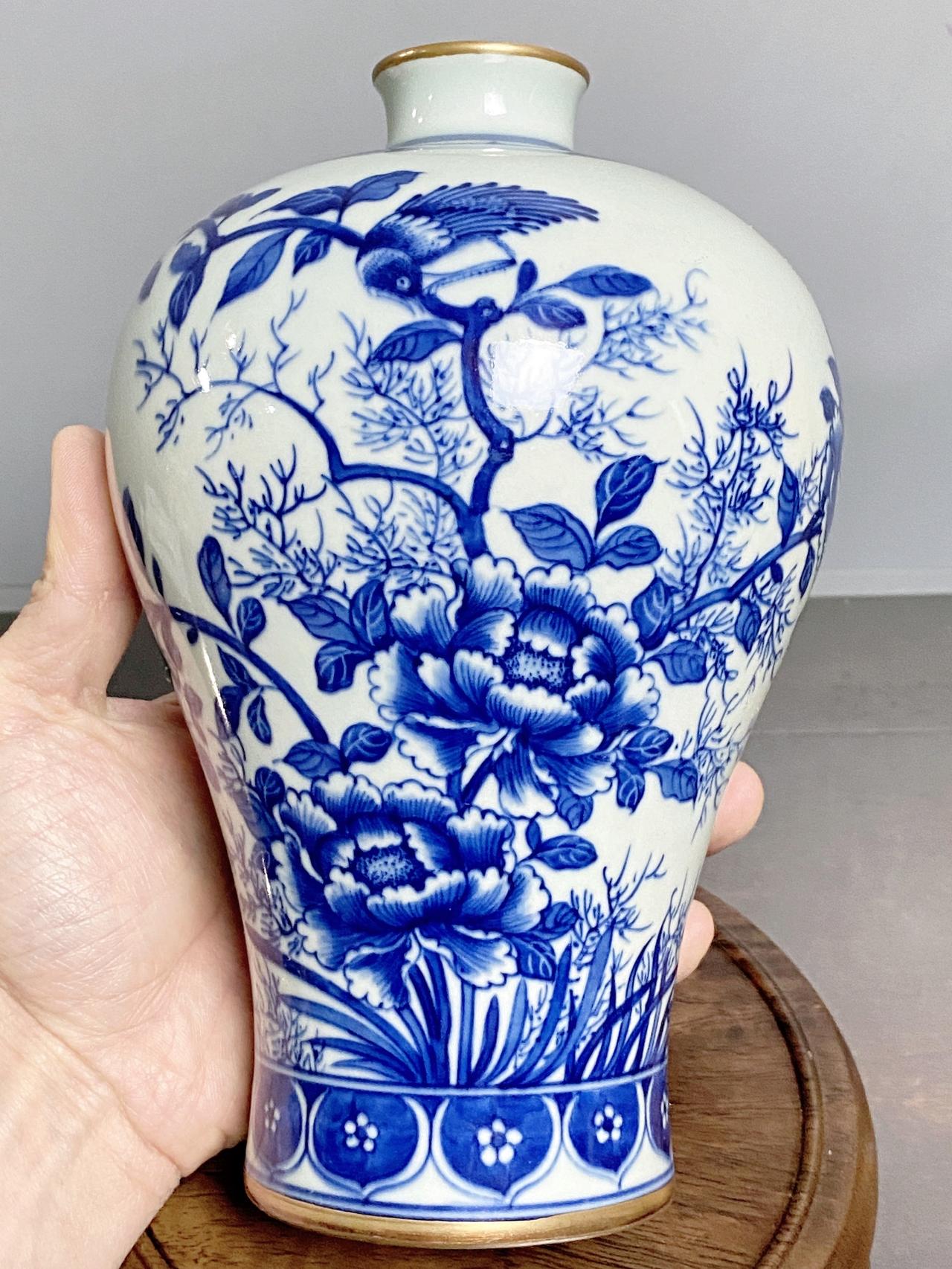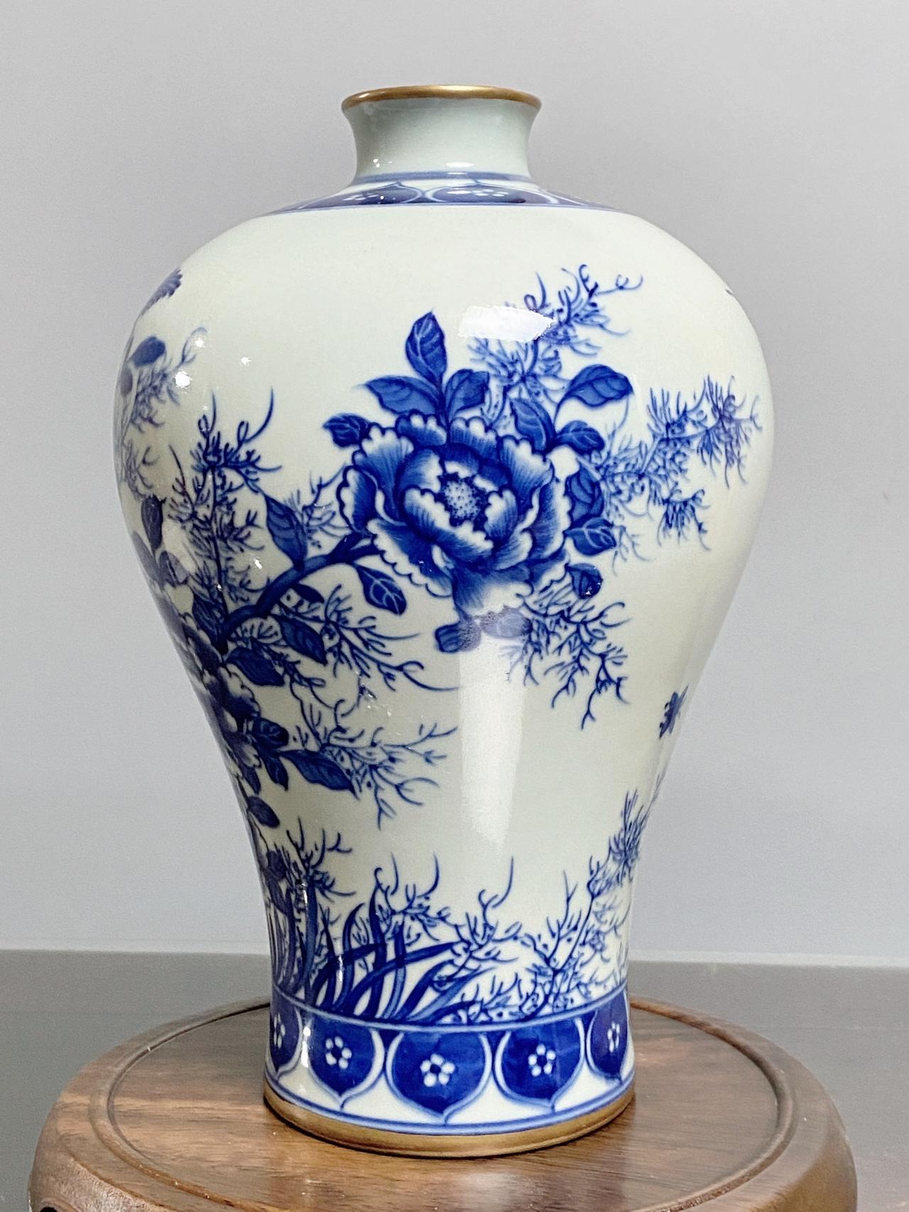 清康熙翠毛蓝花鸟纹梅瓶,典型的康熙青花发色;胎釉特征紧皮亮釉,很强的玻璃质感、大师级精美画工;此件藏品属于康熙官窑极品哦,而且属于大开门到代康熙官窑器!明清瓷器 官窑 瓷器 古董