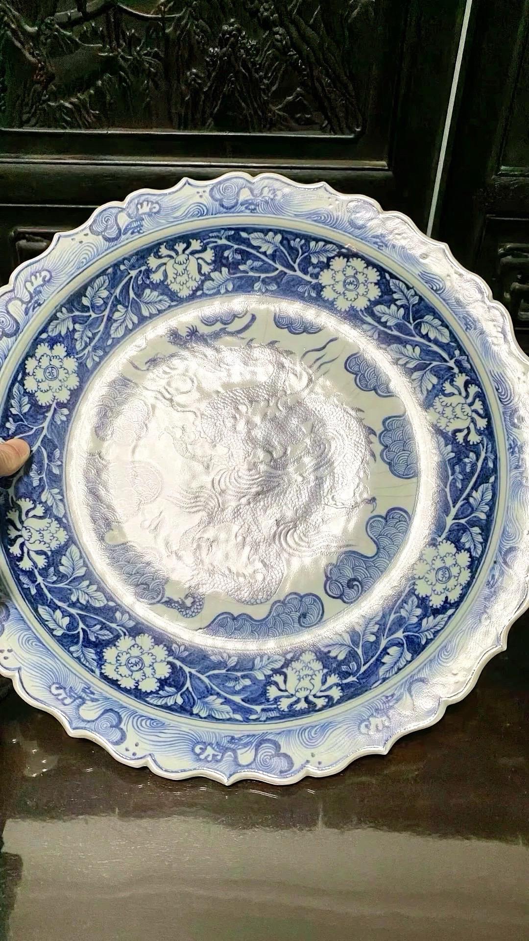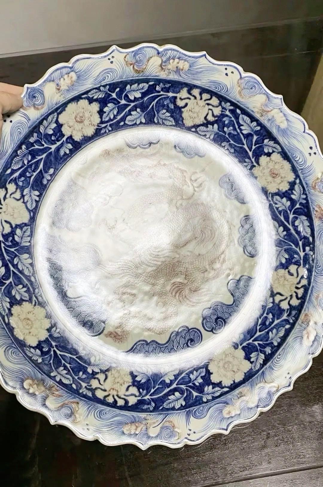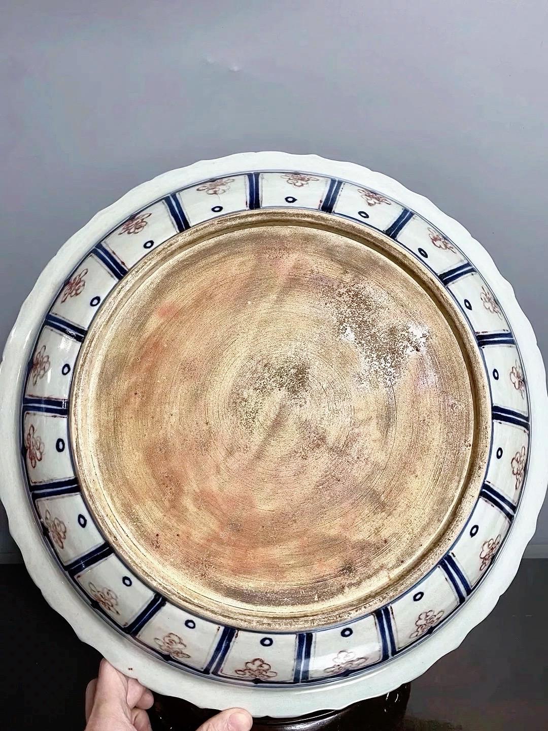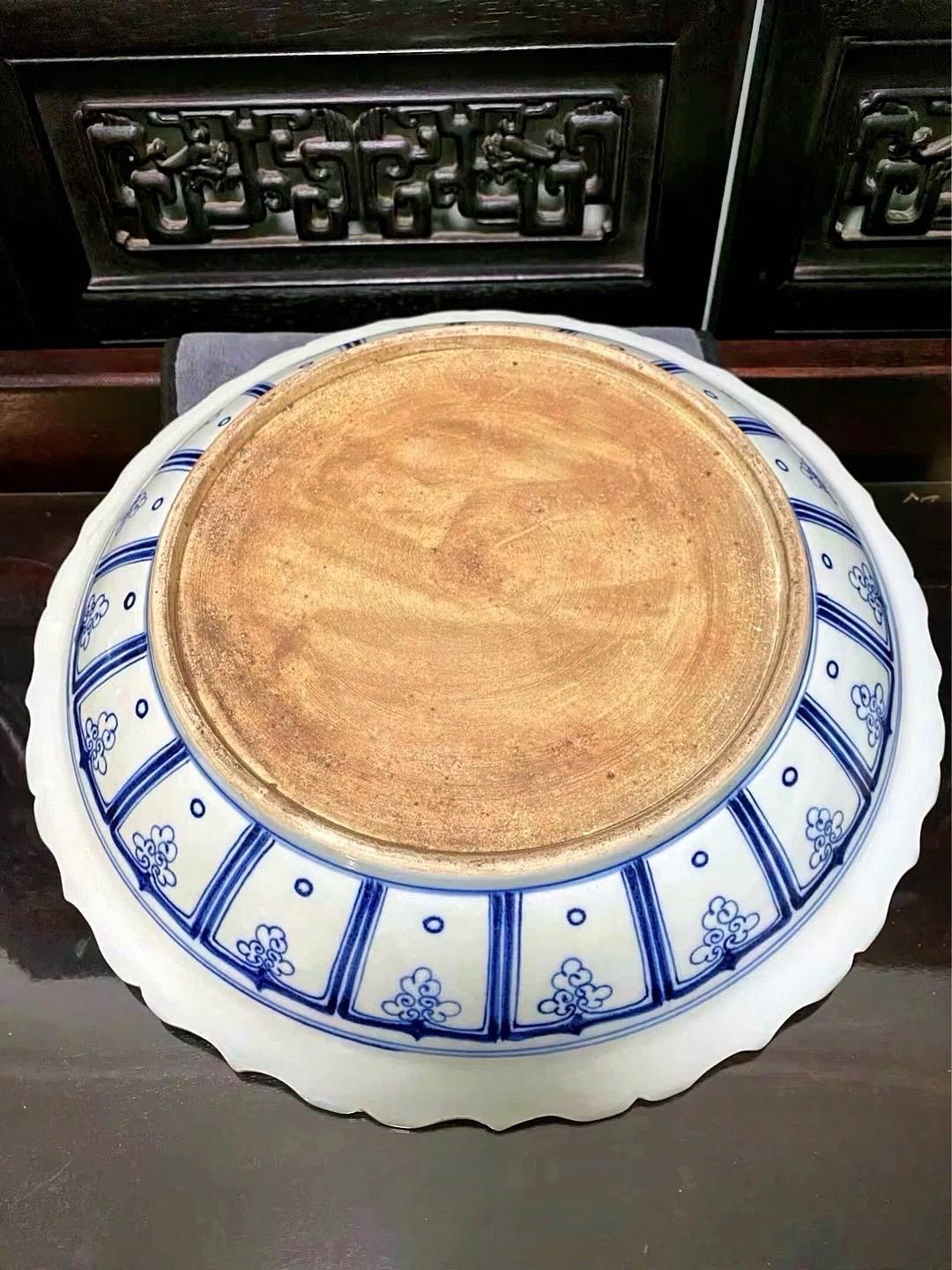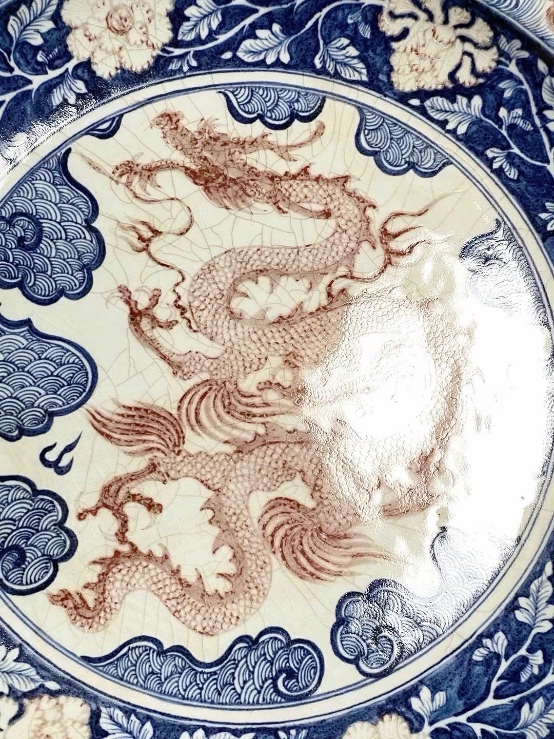 元青花龙纹菱口赏盘欣赏,真正大开门元青花真品;苏麻离青进口料陈胎感明显,宝光笼罩釉水肥厚、胎釉表面细腻棕眼;局部稀疏土沁大开片,微观老化密集的黑色、褐色气泡老化;麻仓土胎土老化明显,真正大开门的元青花瓷器鉴赏!元青花 瓷器 古董 收藏