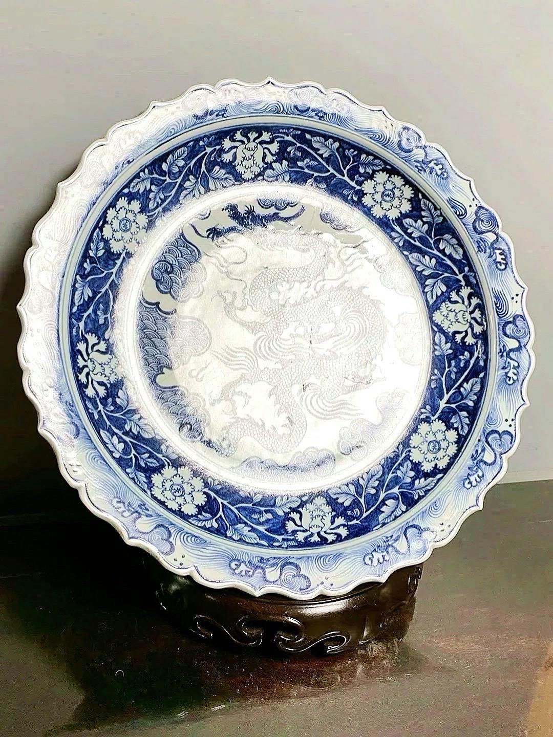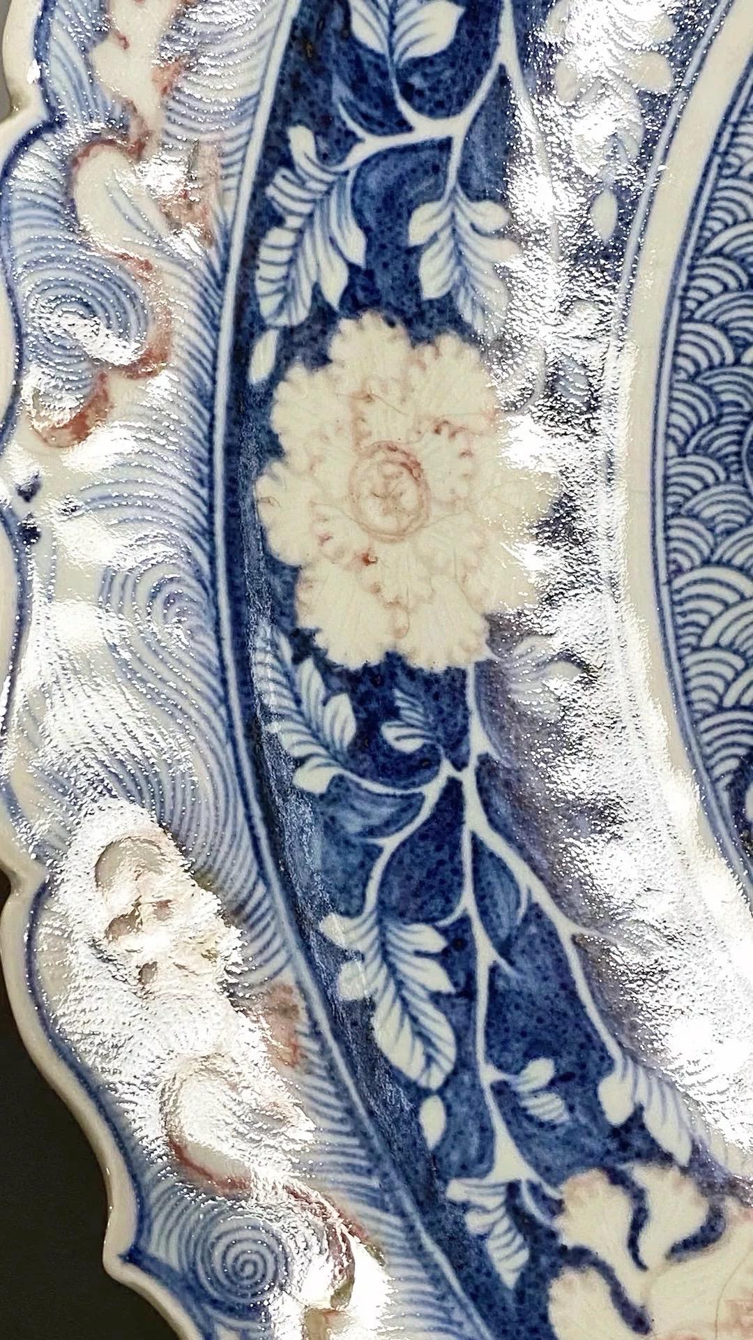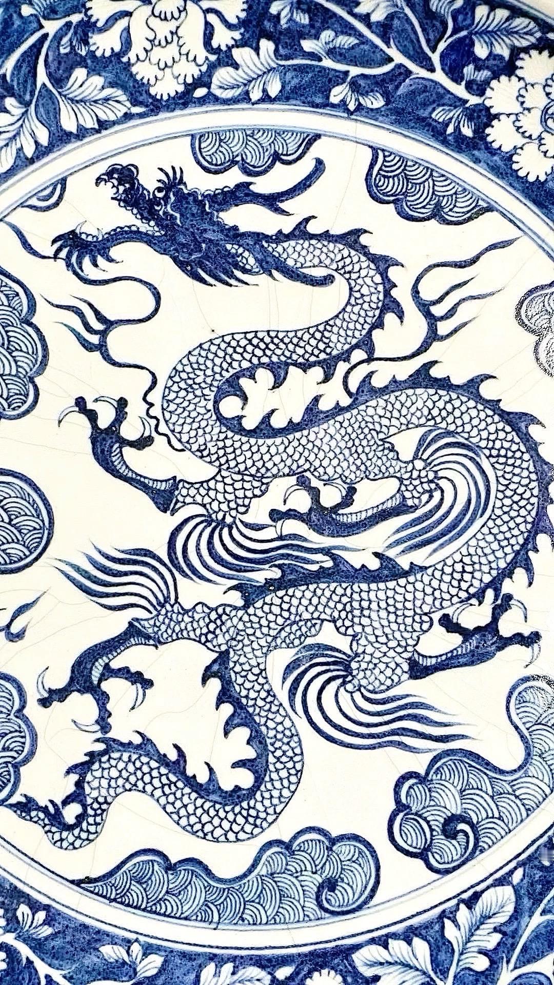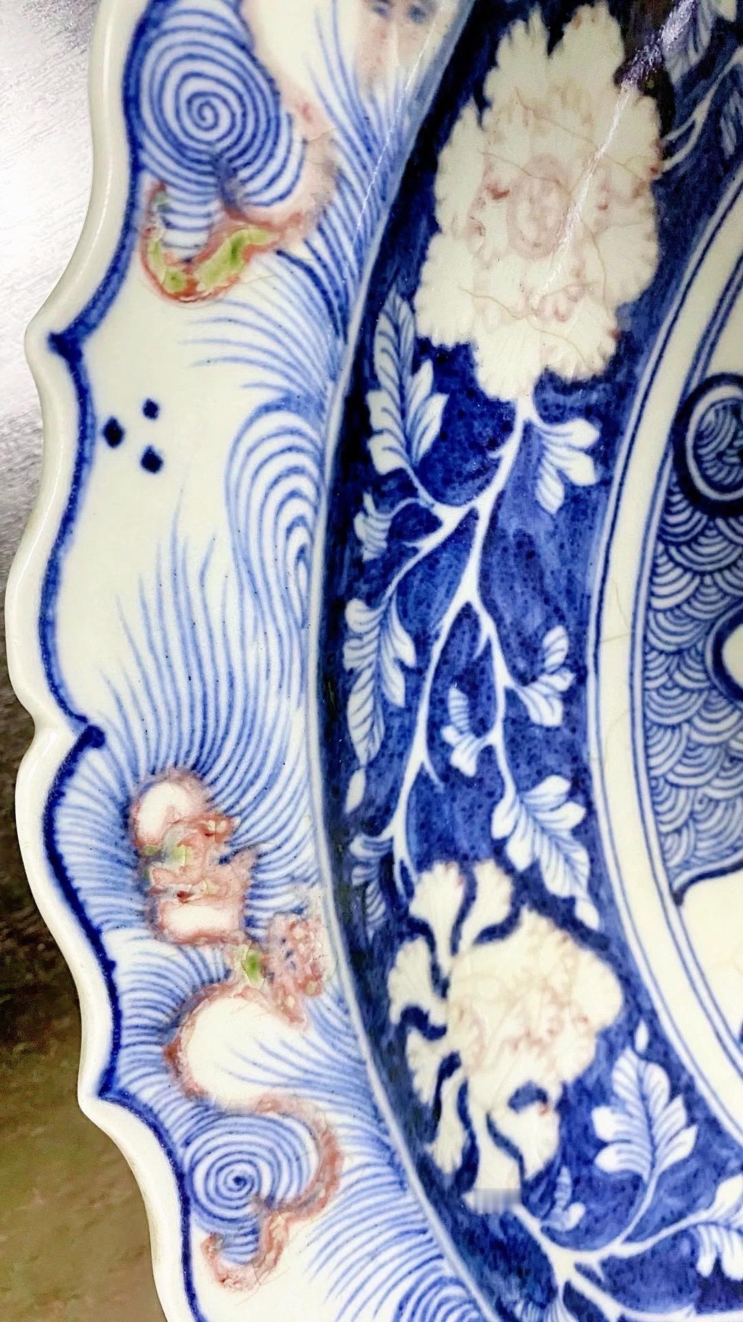 元青花龙纹菱口赏盘欣赏,真正大开门元青花真品;苏麻离青进口料陈胎感明显,宝光笼罩釉水肥厚、胎釉表面细腻棕眼;局部稀疏土沁大开片,微观老化密集的黑色、褐色气泡老化;麻仓土胎土老化明显,真正大开门的元青花瓷器鉴赏!元青花 瓷器 古董 收藏