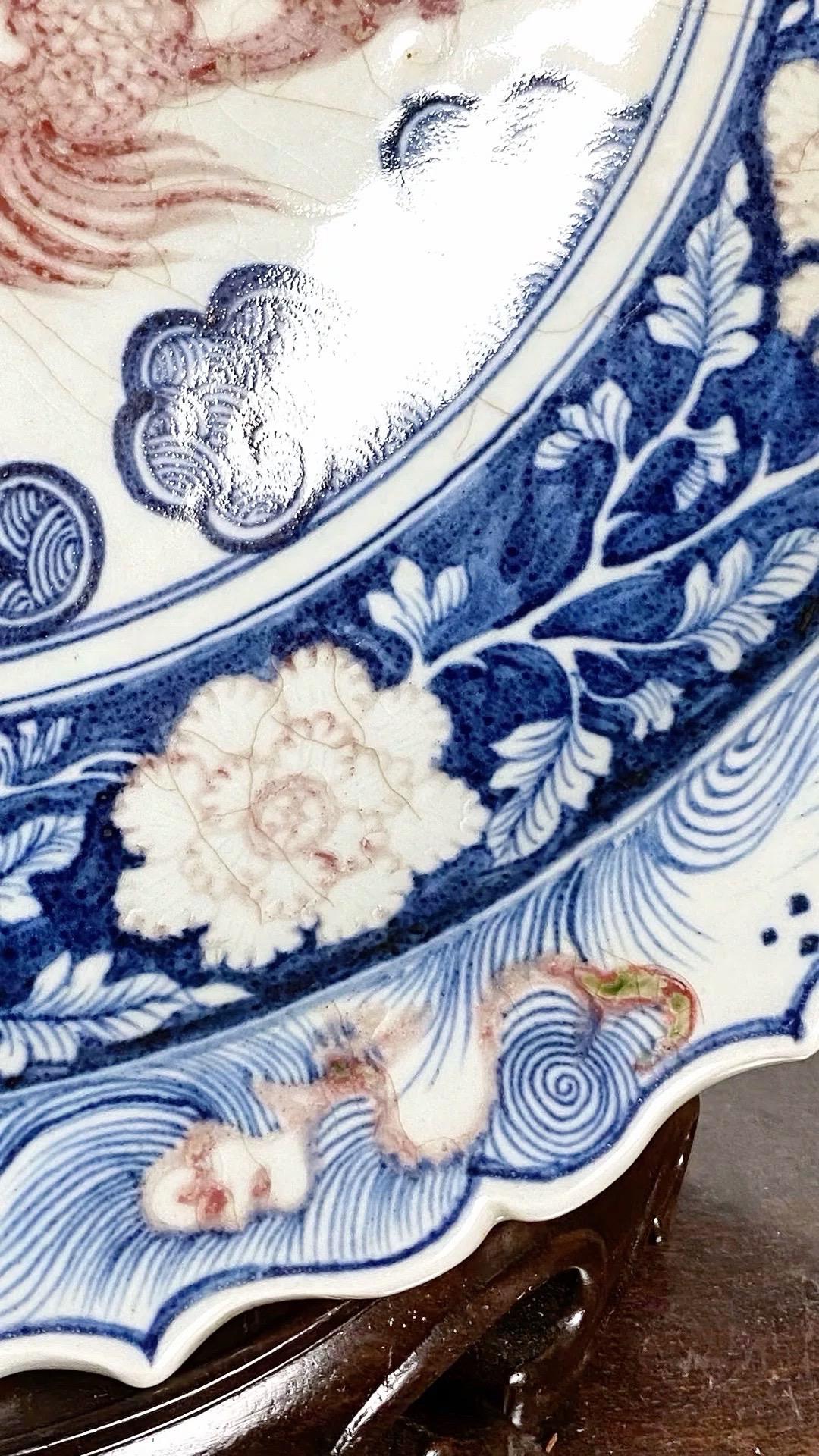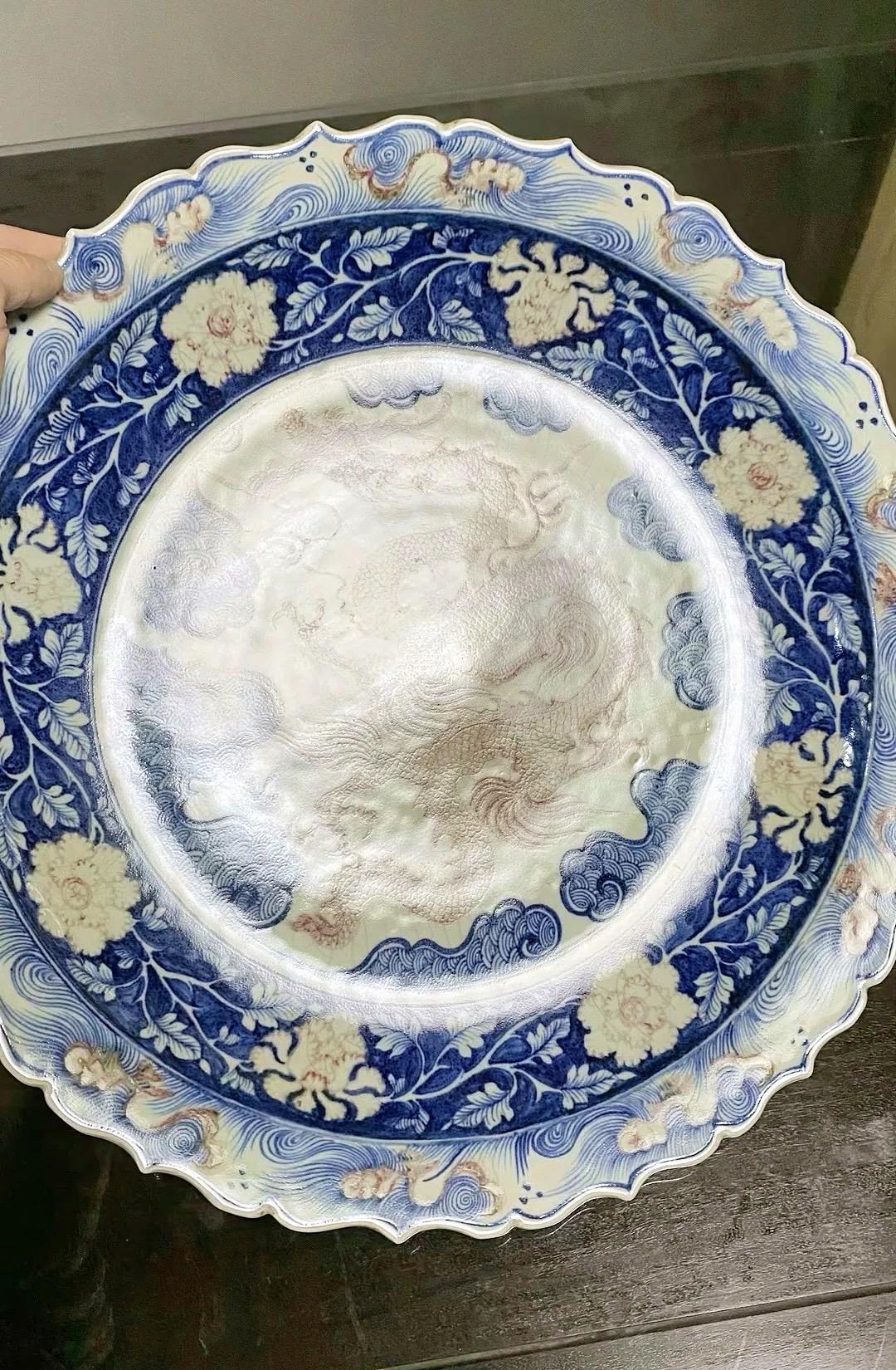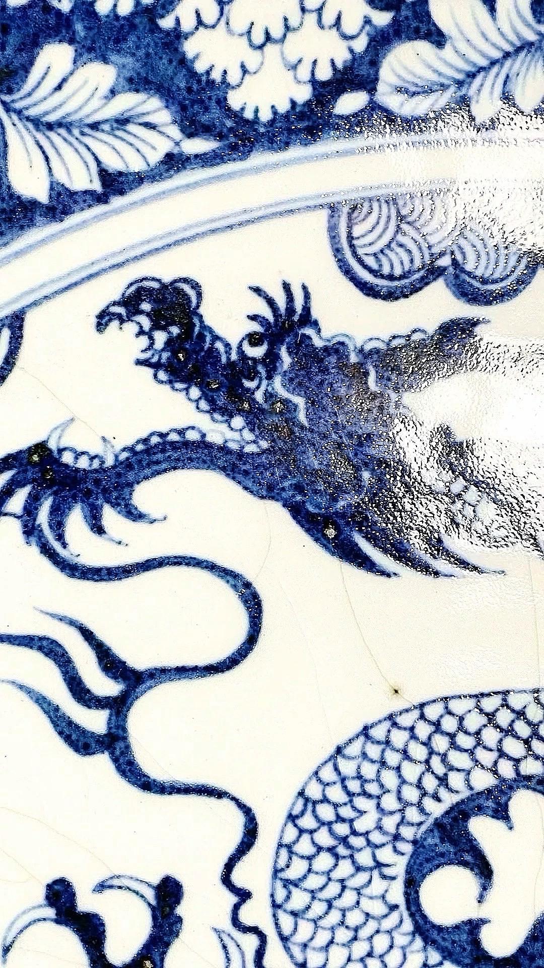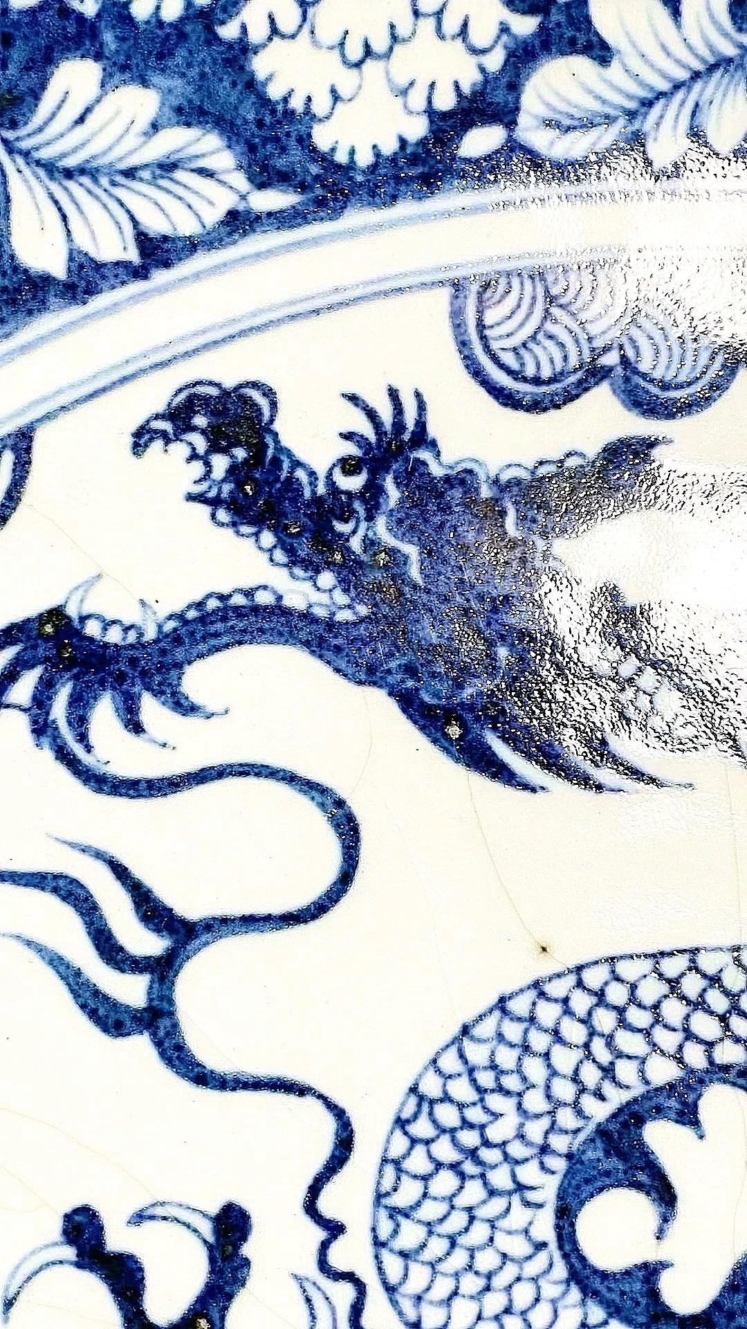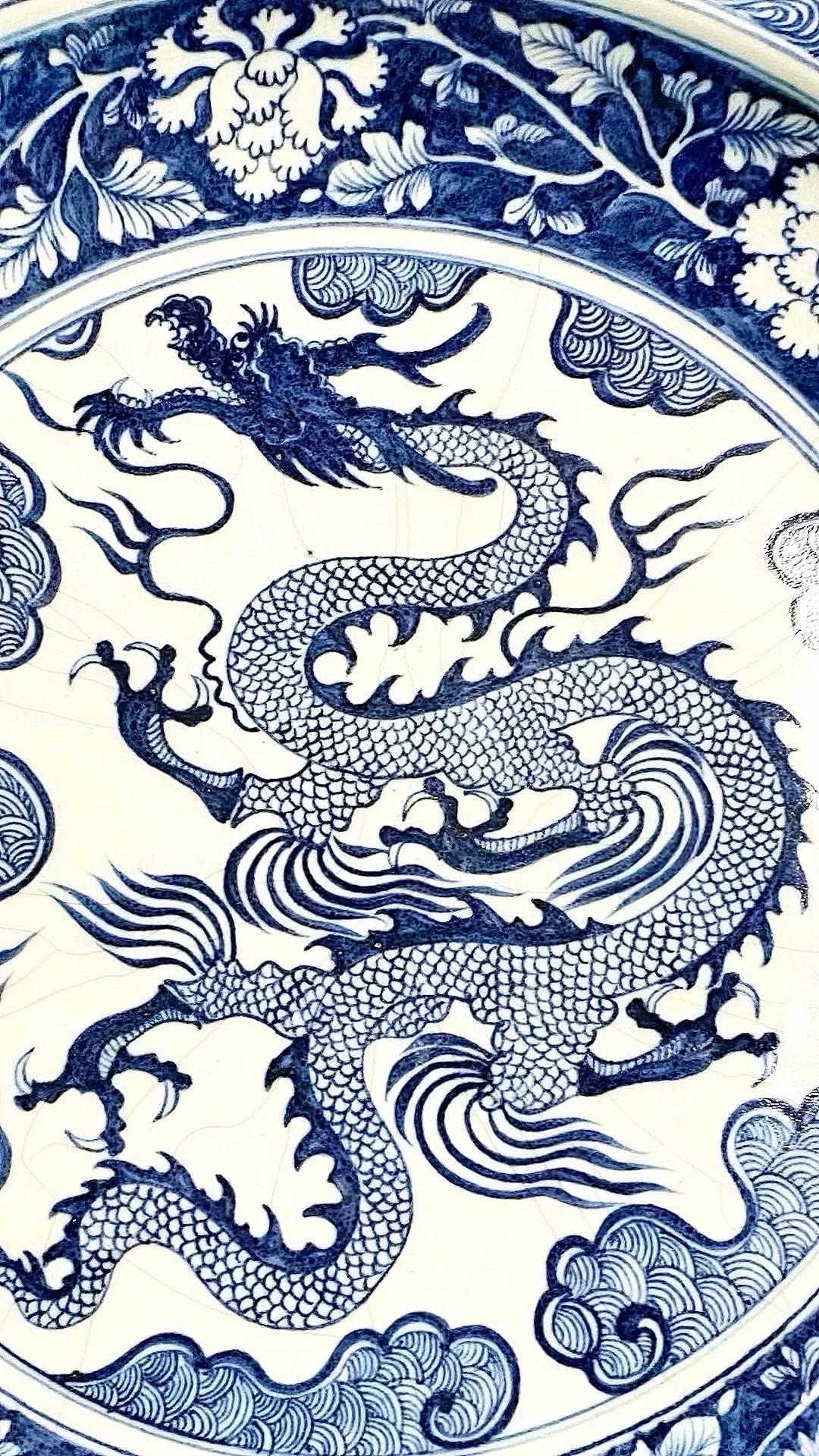 元青花龙纹菱口赏盘欣赏,真正大开门元青花真品;苏麻离青进口料陈胎感明显,宝光笼罩釉水肥厚、胎釉表面细腻棕眼;局部稀疏土沁大开片,微观老化密集的黑色、褐色气泡老化;麻仓土胎土老化明显,真正大开门的元青花瓷器鉴赏!元青花 瓷器 古董 收藏