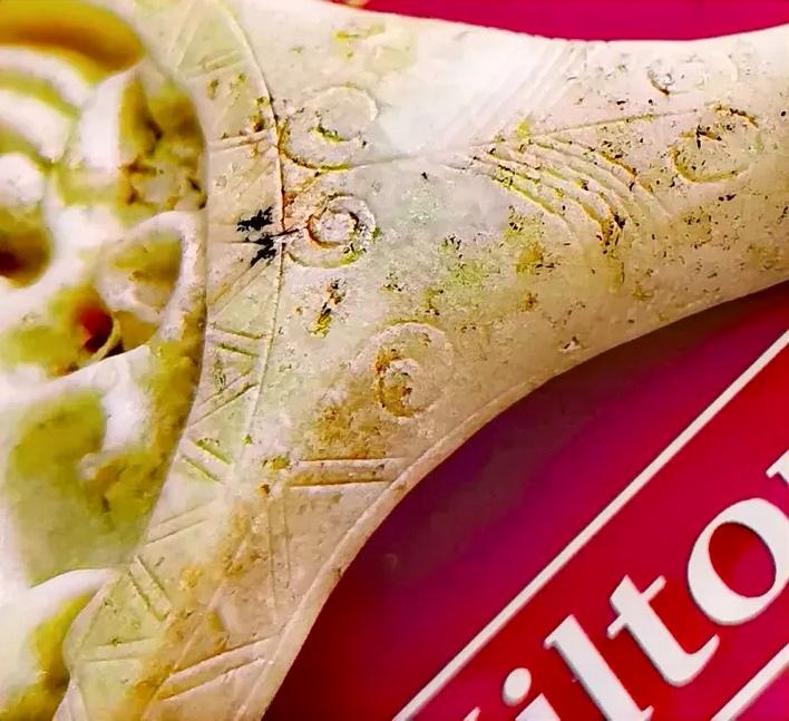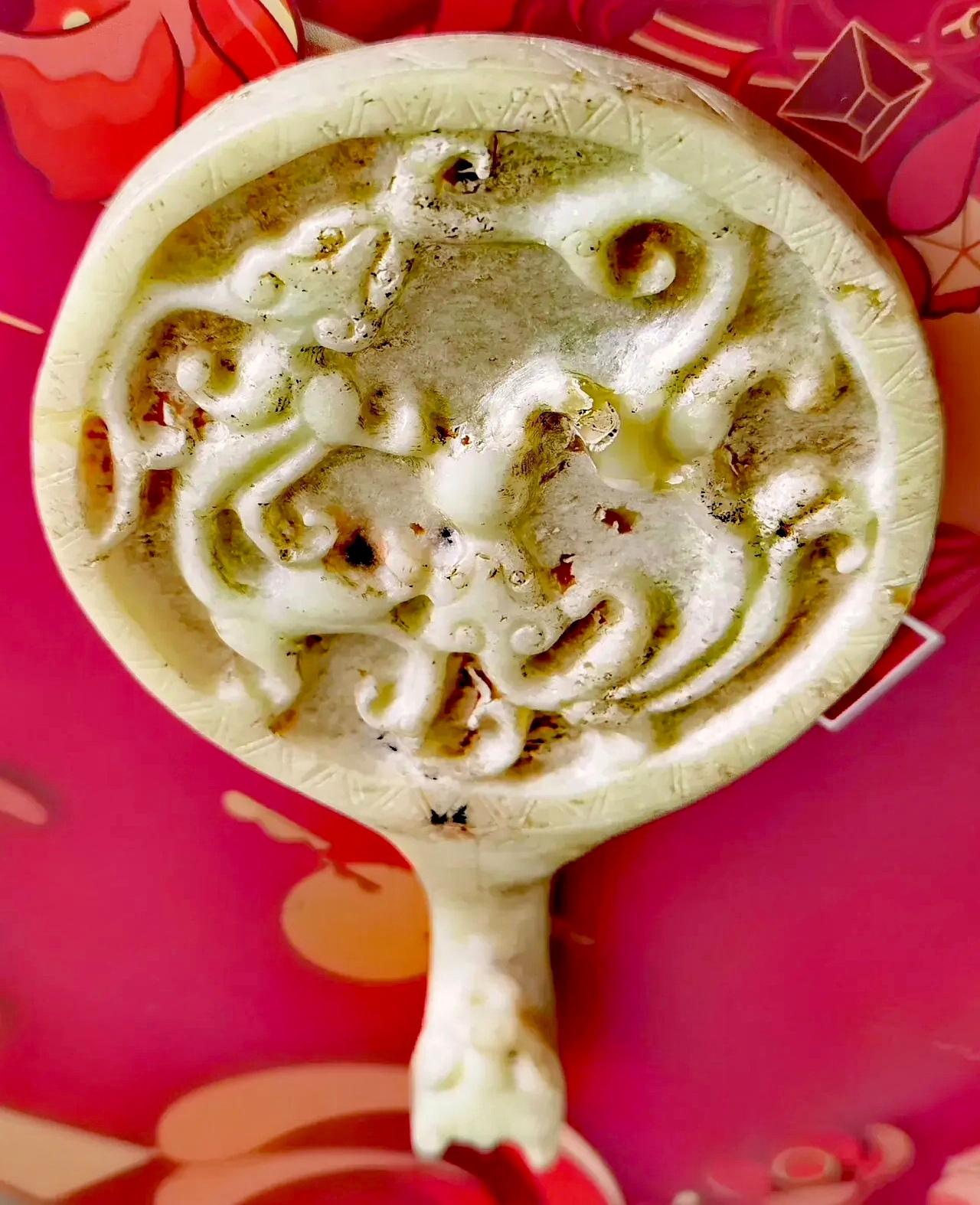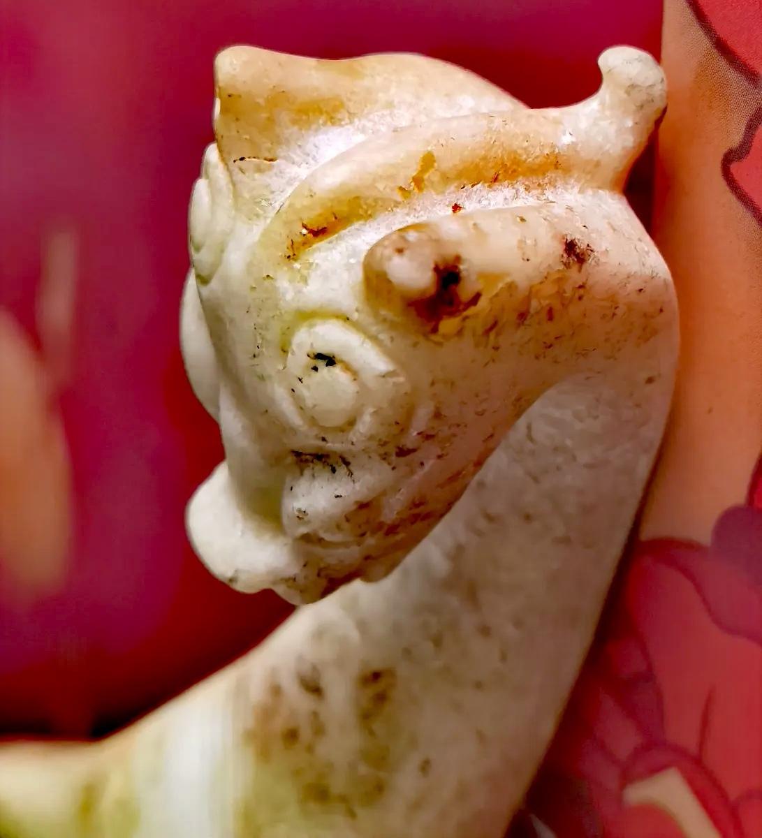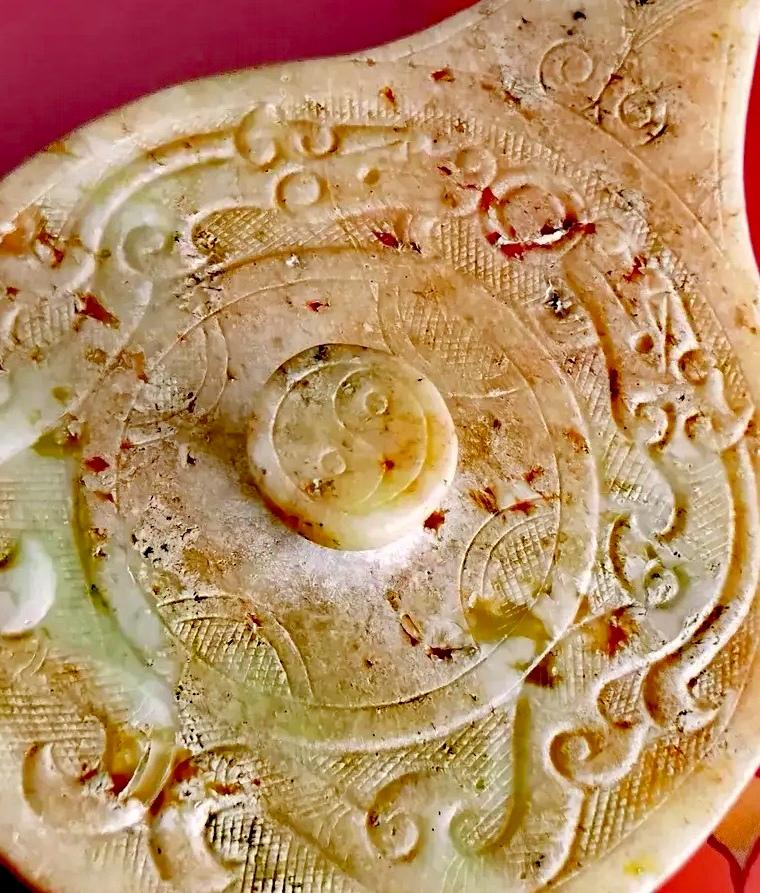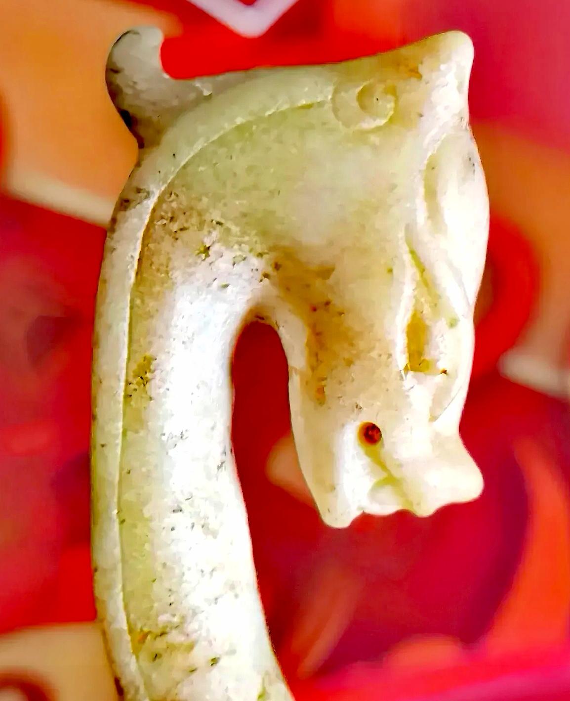带太极图的高古龙首玉带钩。 我见过的最大最重的玉带钩。 长度:14厘米。 圆直径