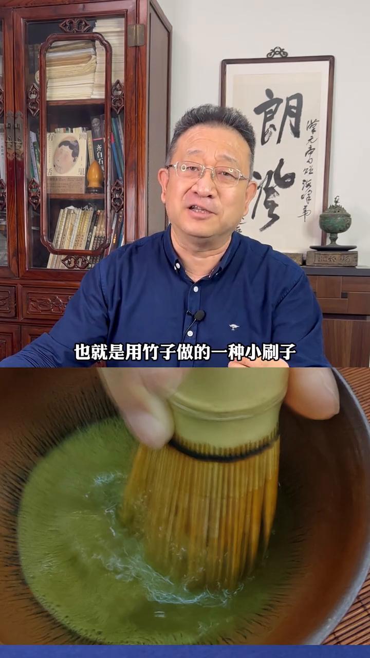 宋代喝茶跟现在区别很大,喝的是茶粉。看旁边这个卖茶担子上写上等江茶,这是普通人喝的绿茶,因为沿着江水运输所以叫江茶。它是绿茶,蒸汽杀青以后磨成粉,喝的时候用开水冲茶粉,再用茶筅,也就是用竹子做的一种小刷子搅拌击打直到出现白色泡沫。泡沫白,挂杯时间长,味道纯正,就算是胜出了。