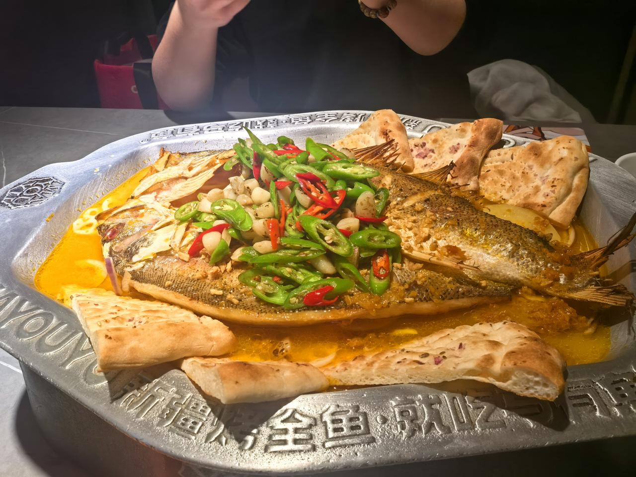 第一站,兰州。先吃一顿有兰州特色的烤鱼,馕泡在鱼汤了,绝了[爱慕]