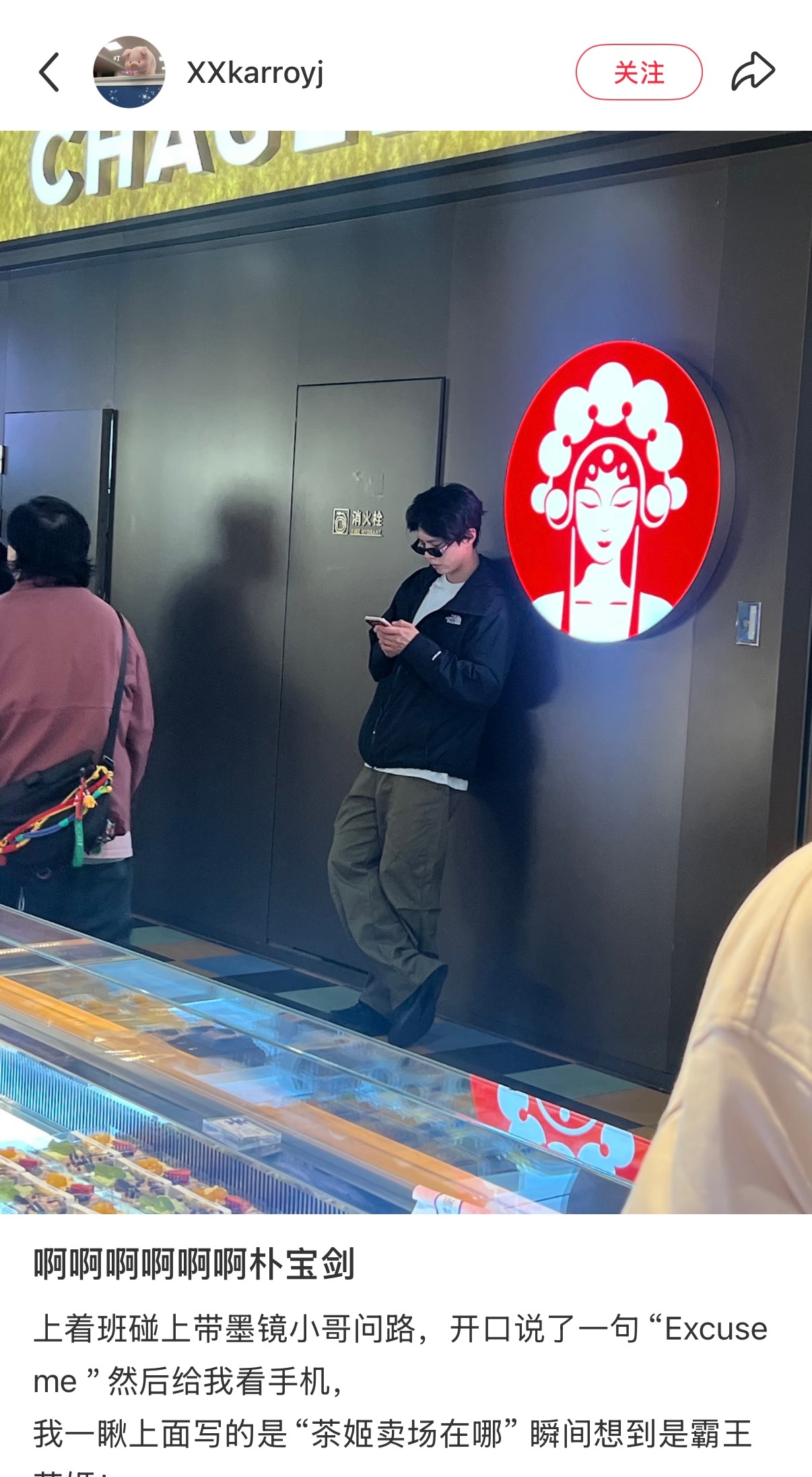 好多网友在上海偶遇到了朴宝剑也太帅了吧另外韩国的朋友真的是霸王茶姬忠实用户