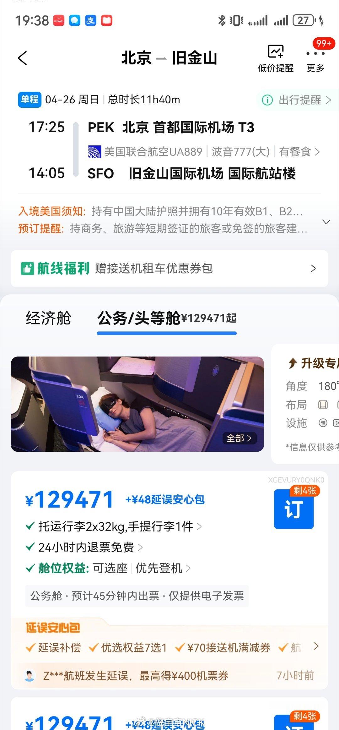 为啥飞美国的UA(美联航)会这么贵?公务舱都12万了?? 国航 共享UA。经济舱都要6万? 啥情况!!? ? 其他航司经济舱也就几千啊… 杭州