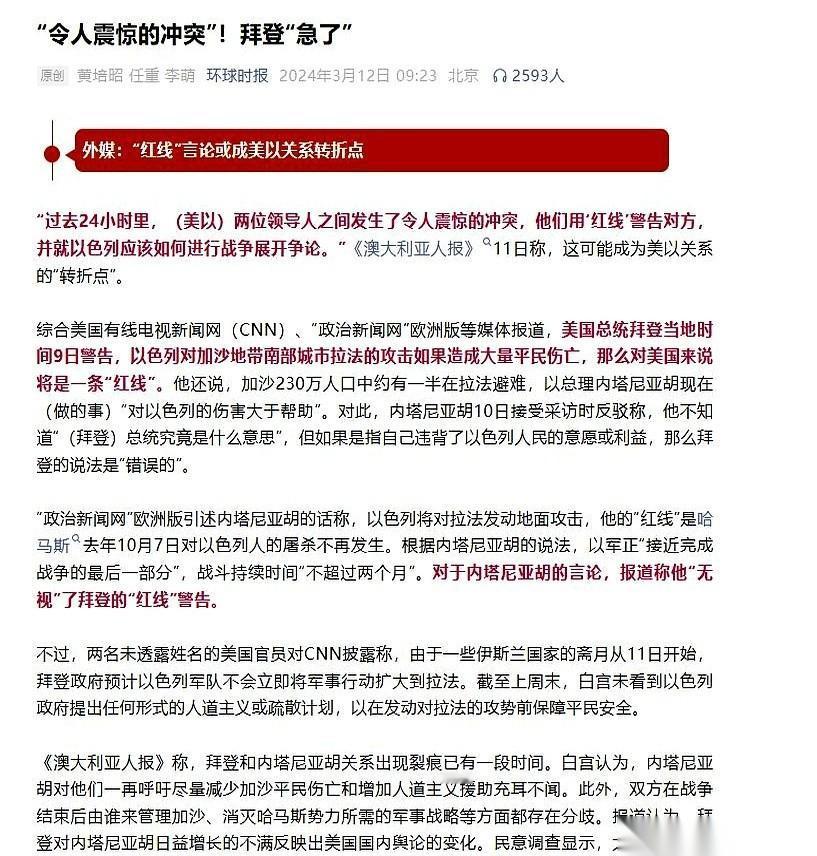 他没在密室里谈,就是公开警告内塔尼亚胡:拉法那个地方,你要是搞出大规模平民伤亡,就是踩了我的红线。