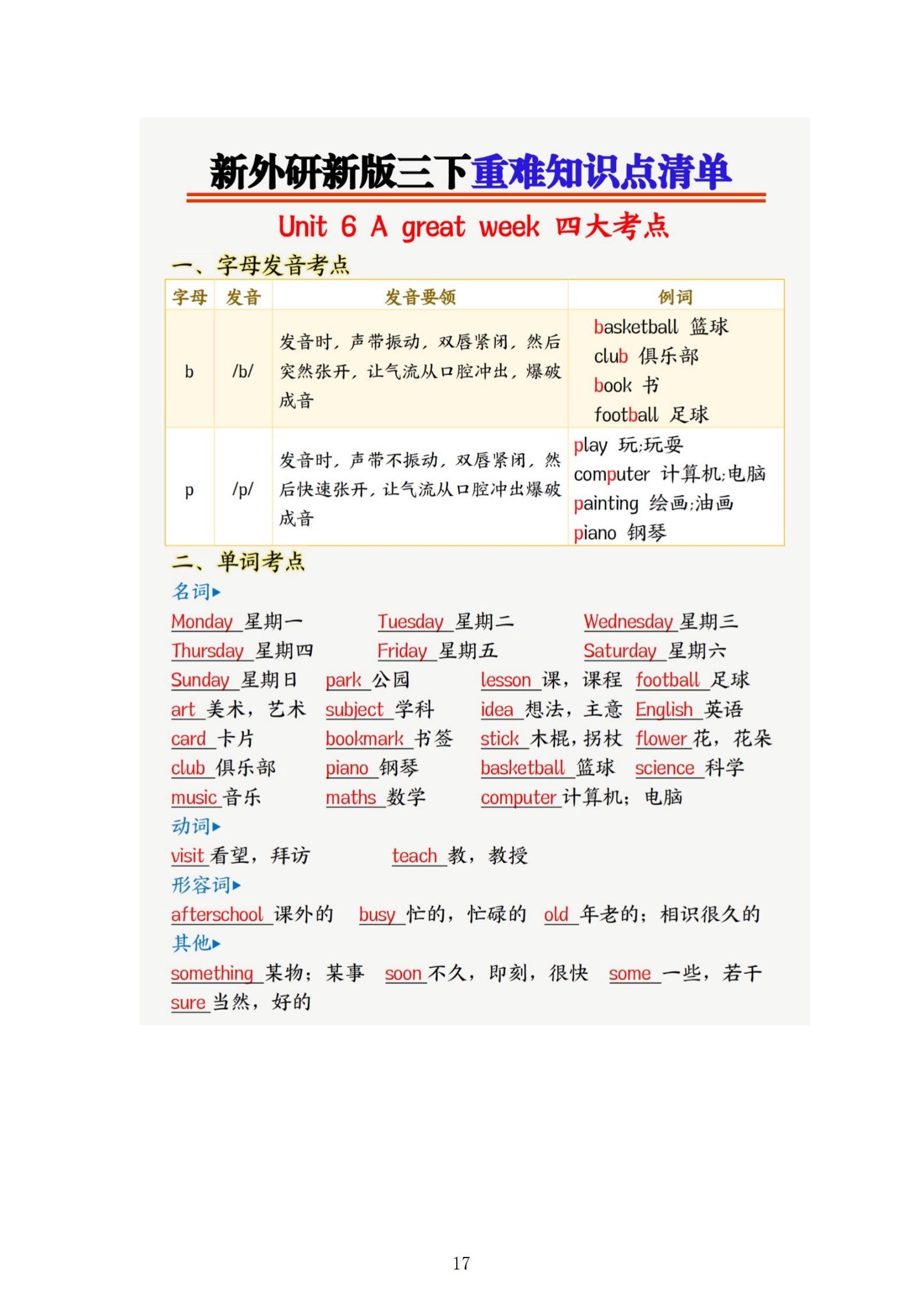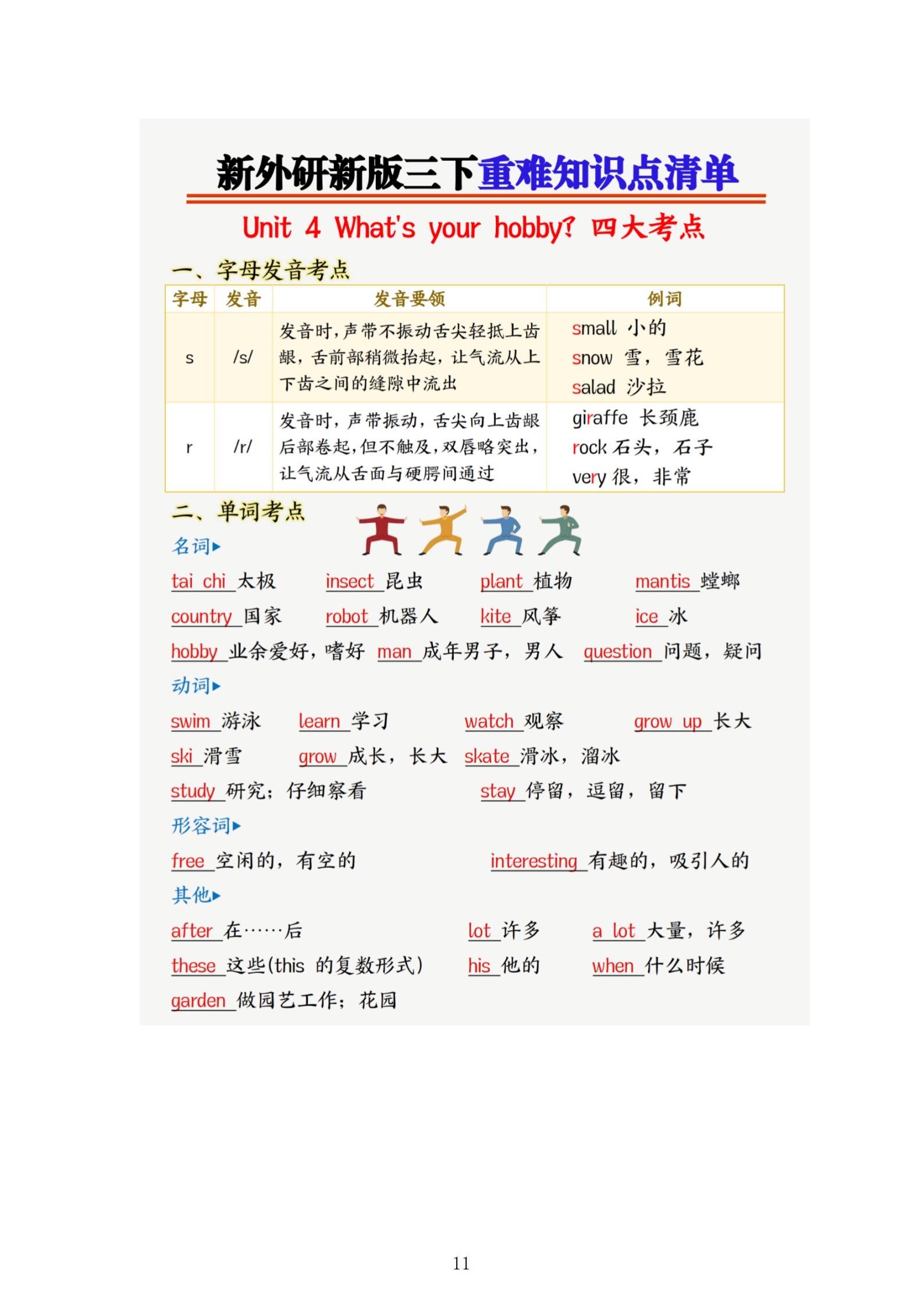 三年级下册外研版英语|全册知识点汇总。外研版三年级英语下册核心考点汇总...