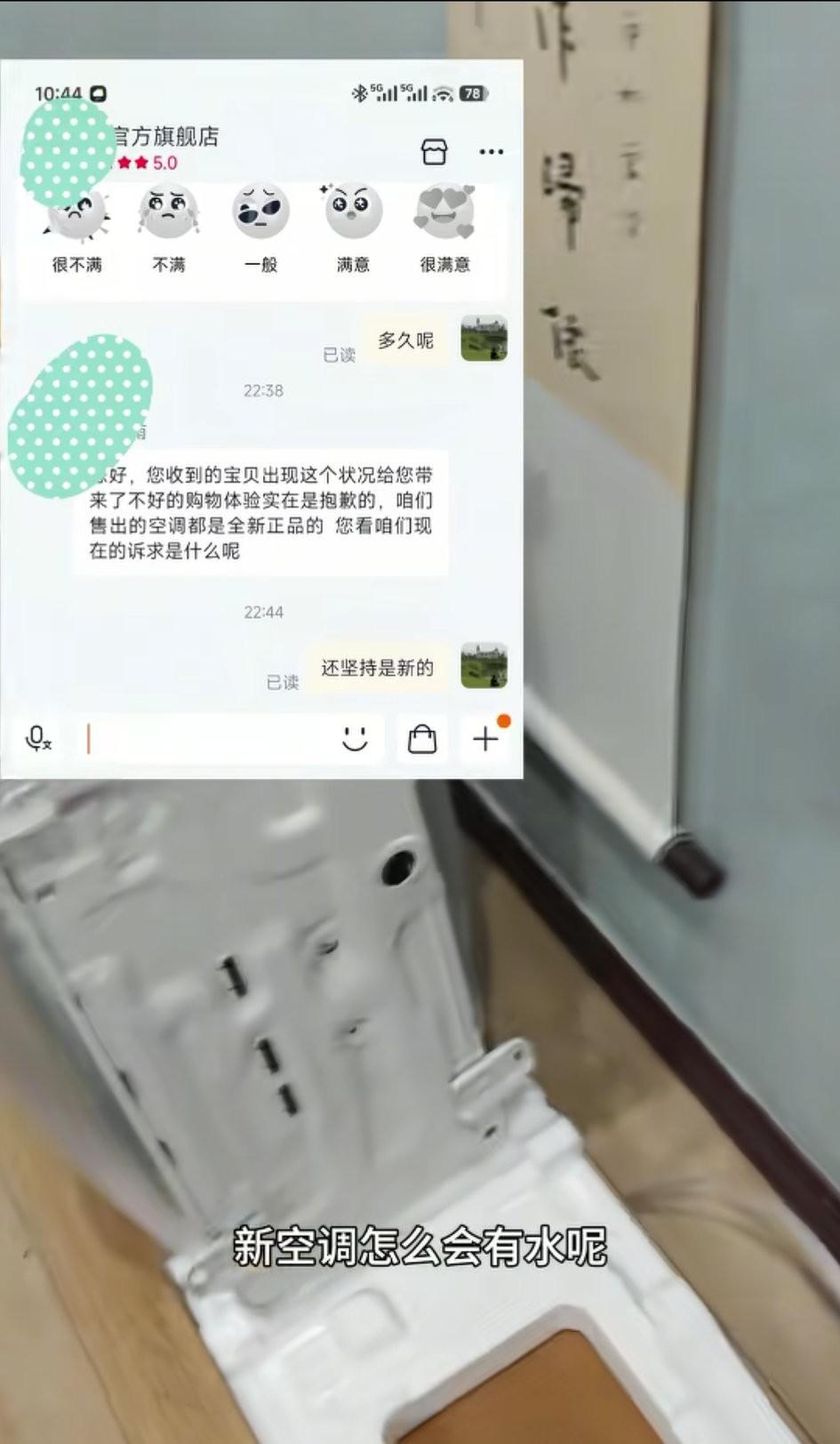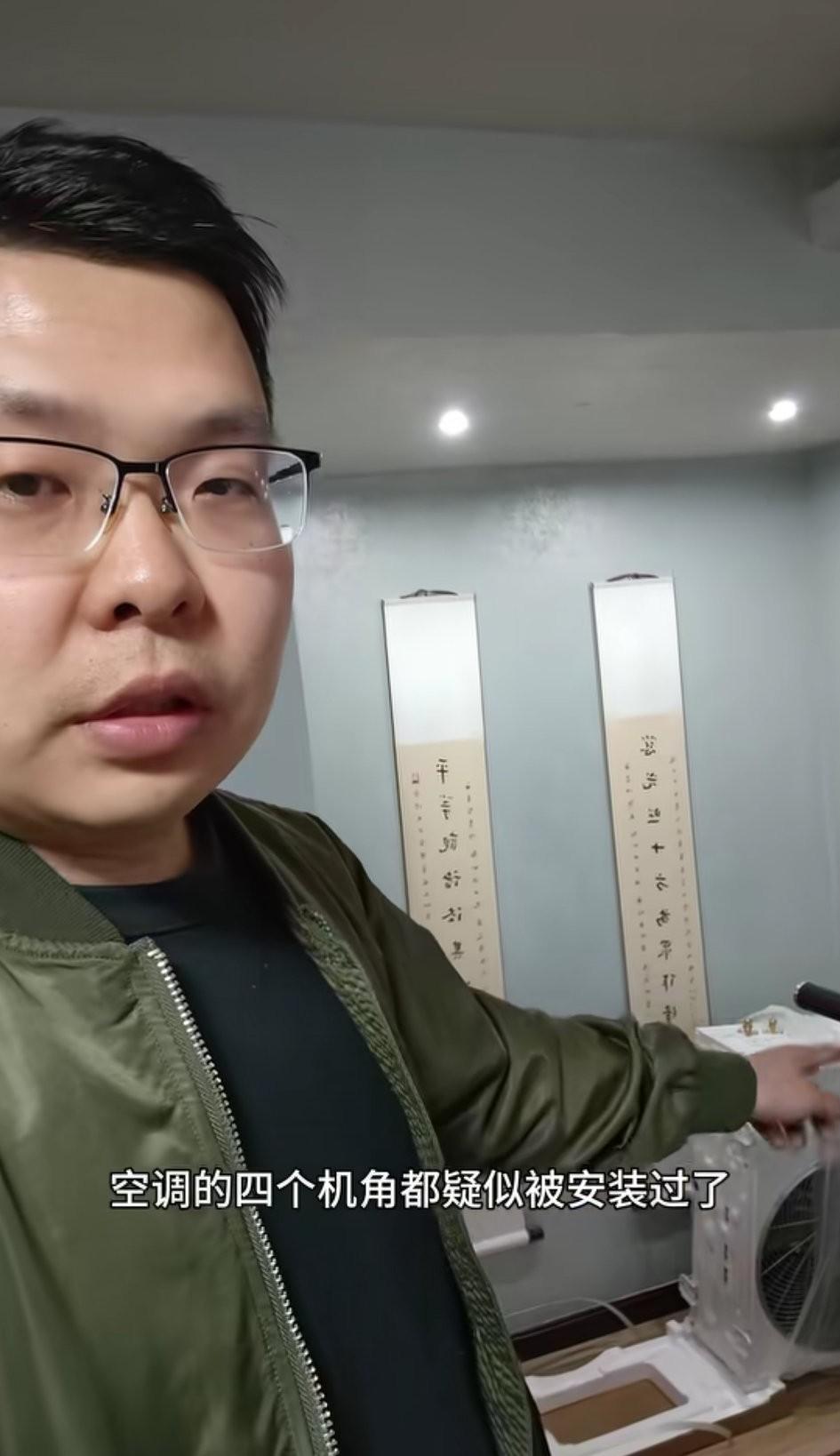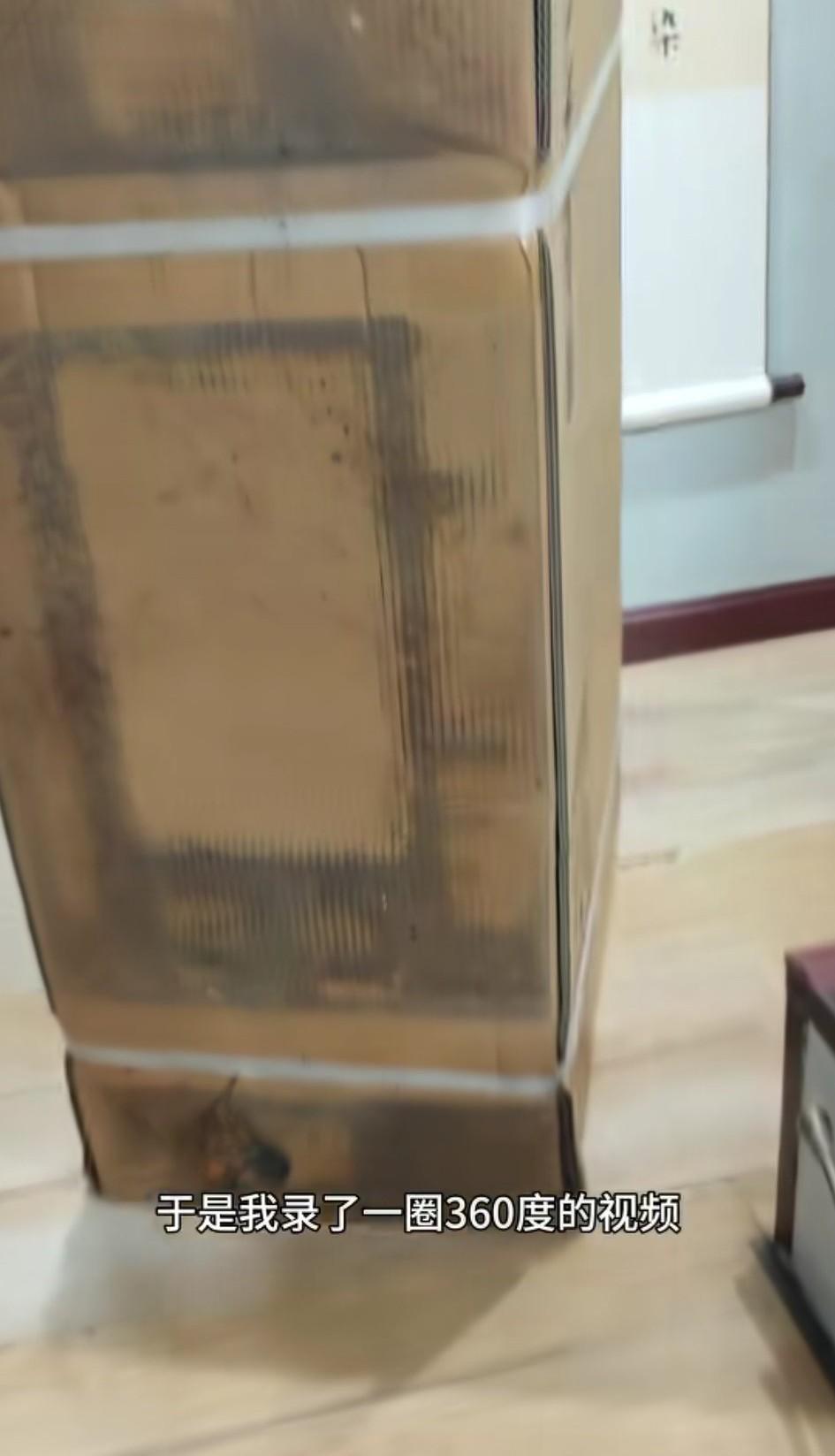 重庆,男子发视频称:买了一台某网红品牌的空调,发过来就看到外包装的纸壳是湿的,就
