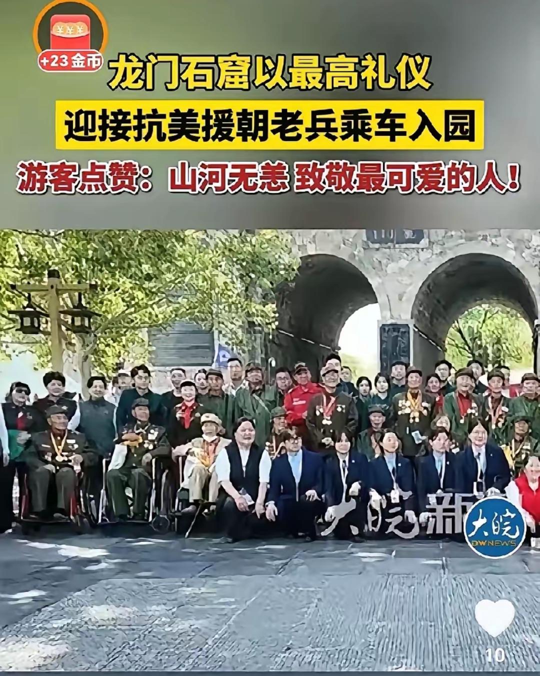 近日,河南洛阳龙门石窟景区来了28位志愿军老战士,没想到违反景区规定,游客们还都说景区做得好。