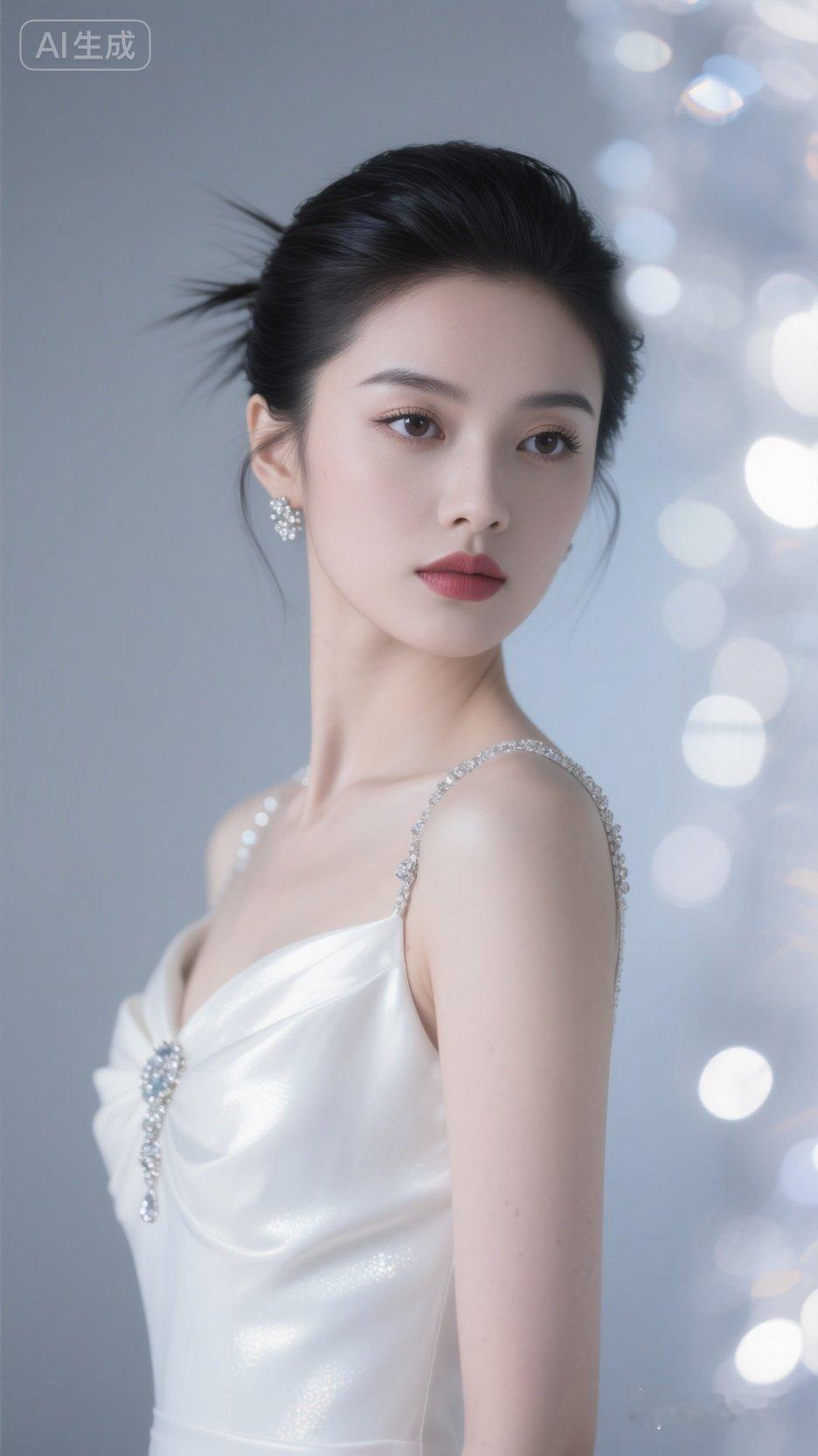 陈妍希墨绿亮片长裙优雅写真