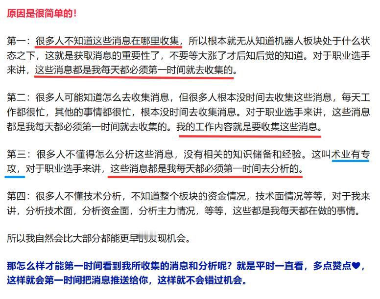4、第一手消息的关键性。很多人后知后觉,等涨起来了才知道,所以第一手消息就非常的关键了,一定要在行情刚开始的时候就立马知道,这个才是关键,而我的工作就是挖掘第一手消息,很多时候行情刚起来我就发现,因为我的专业和工作就是做这个的。