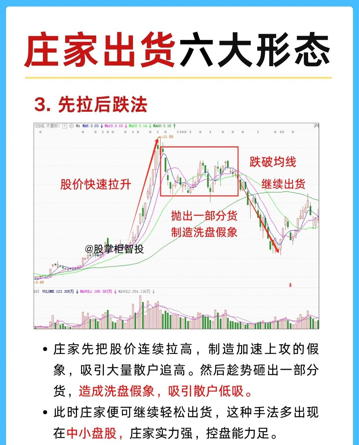 3. 先拉后跌法 —— 制造洗盘假象的出货陷阱