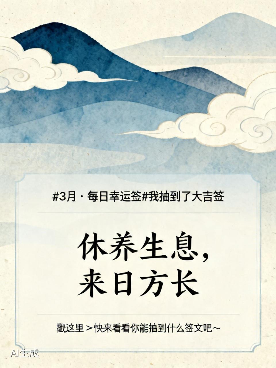 3月·每日幸运签 哇塞,3月抽到大吉签,签文是“休养生息,来日方长”,感觉超幸运!