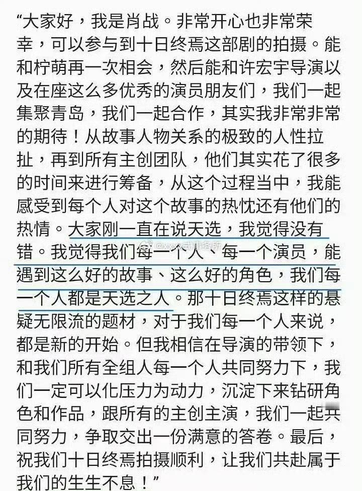 肖战十日终焉开机全部发言:🙋‍♀️ “大家刚一直在说天选,我觉得没有错.我觉得