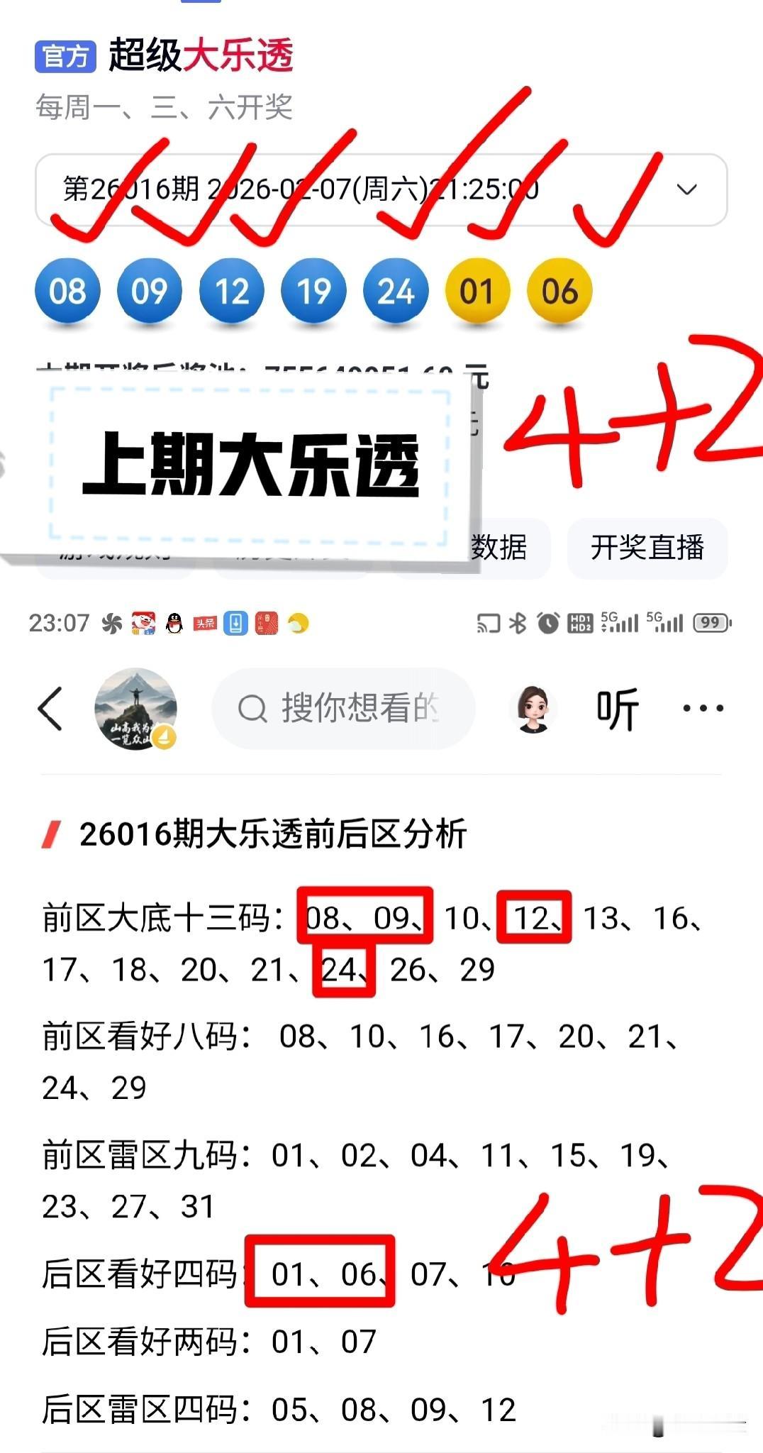 就在上期21:15开奖前,我在平台上发布的分析文章《26017期双色球红球分组探讨》中,对第一组五码(01、08、17、21、29)给出了明确观点:“整体偏向前后段,个人感觉可能开出2个。其中,01和29让我格外留意。”
