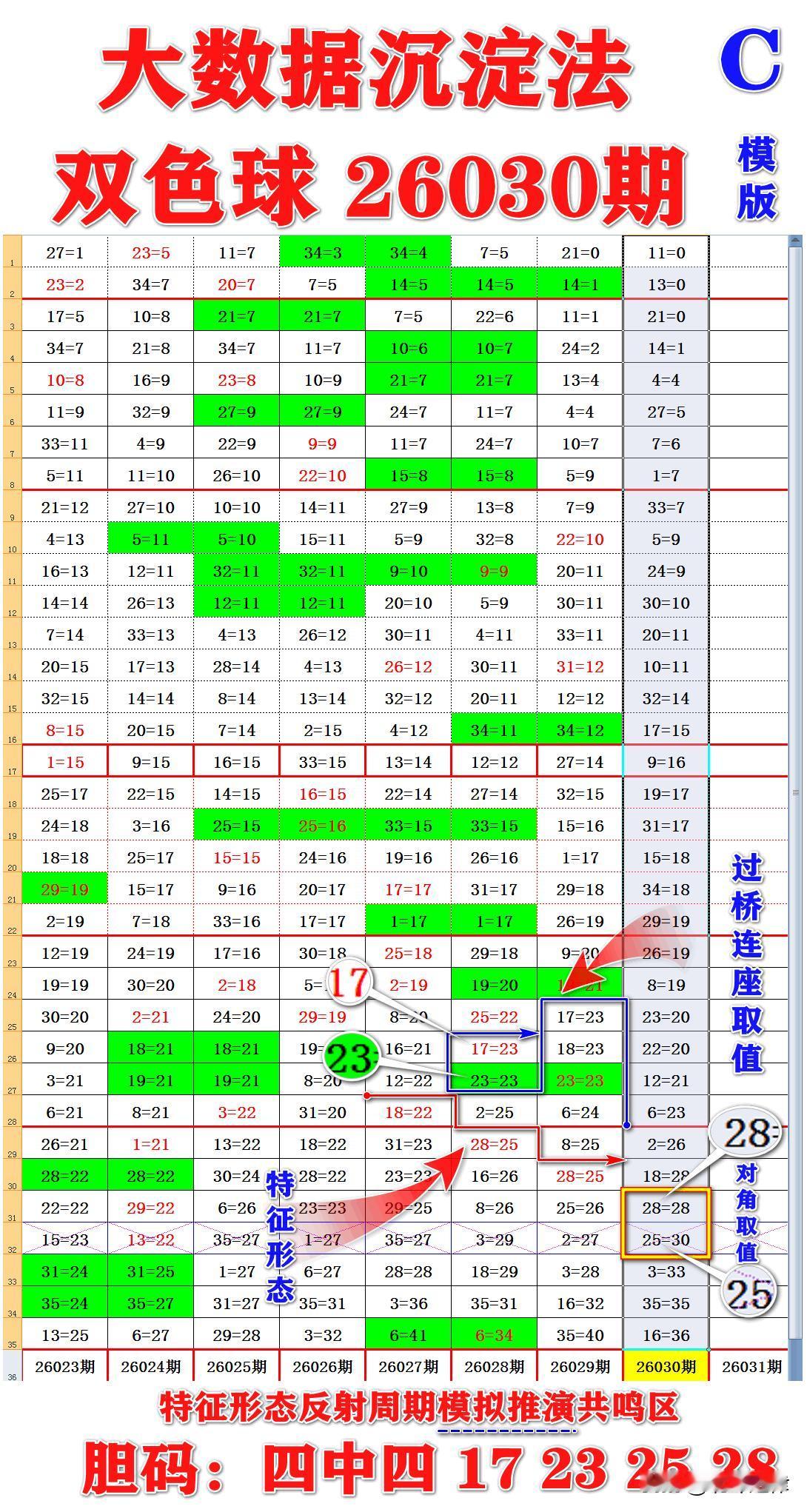 C模板推演胆码:17、23、25、28