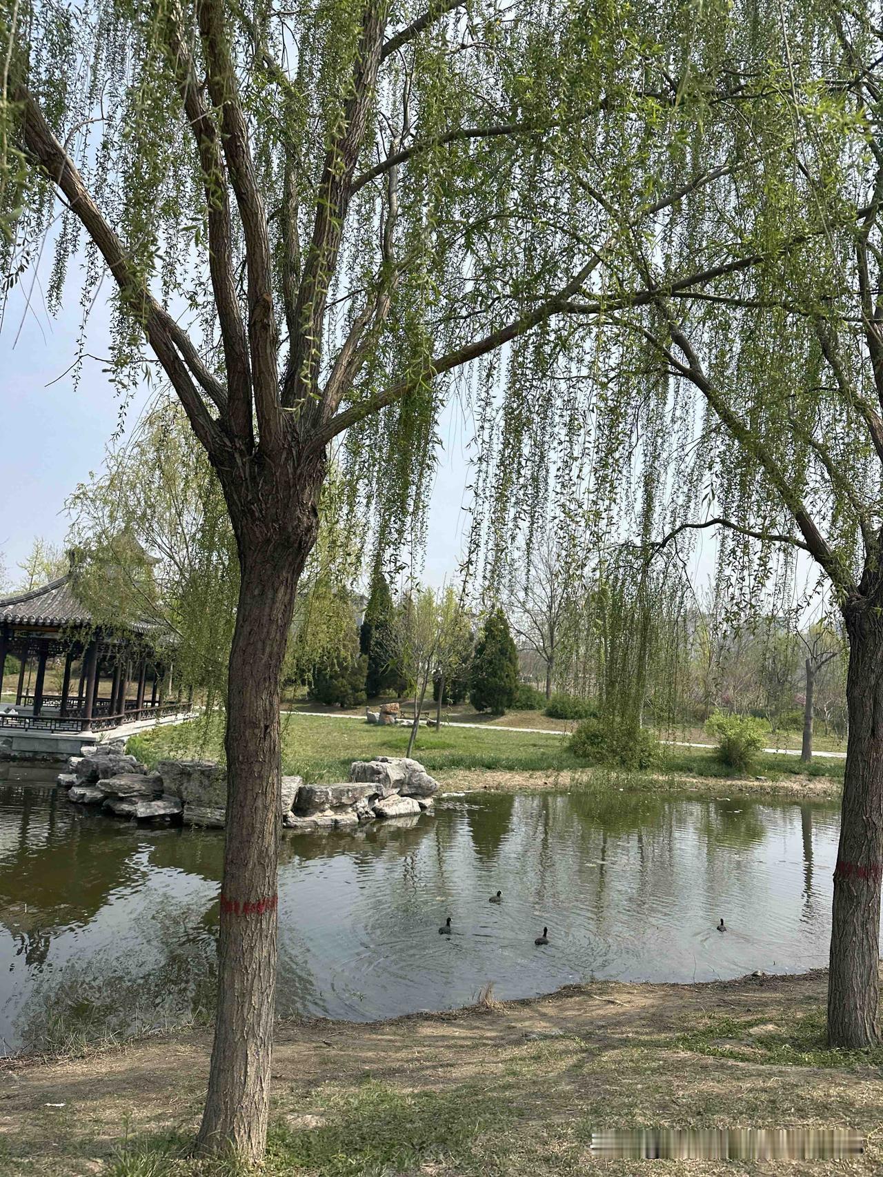 坐在公园的亭子里 最喜欢的就是打卡了 看水里悠闲的水鸟 看水边闲逛的人群