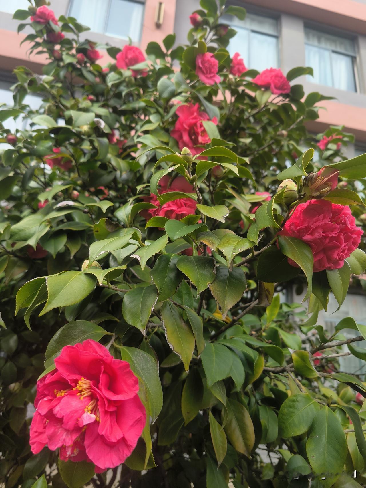最先映入眼帘的是那株苦橘。20多年前,我去水库北岸的一个鱼塘钓鱼,塘主家有棵高大的高龄苦橘树。因果实味苦,无人采摘,冬天时,满树金黄的果子挂在枝头,格外惹眼。征得主人同意后,我拔了几株牙签粗细的幼苗,先栽进自家花盆。虽悉心照料,却只有一棵存活下来。两年后,我把它移栽到偏僻不起眼的绿植旁。五年后,它长到一人多高,开始开花结果。既然已成型,我便将它移栽到教学楼前两棵茶花树中间的空当处,修剪掉残枝。左右有花树相伴,它的“身价”也提升了,有了名正言顺的地位。此后,它长势旺盛。冬天无花时,黄色的果子挂满树冠,十分壮观,成了校园里的一个拍照打卡点。看着它茁壮成长,我心中的自豪感油然而生!