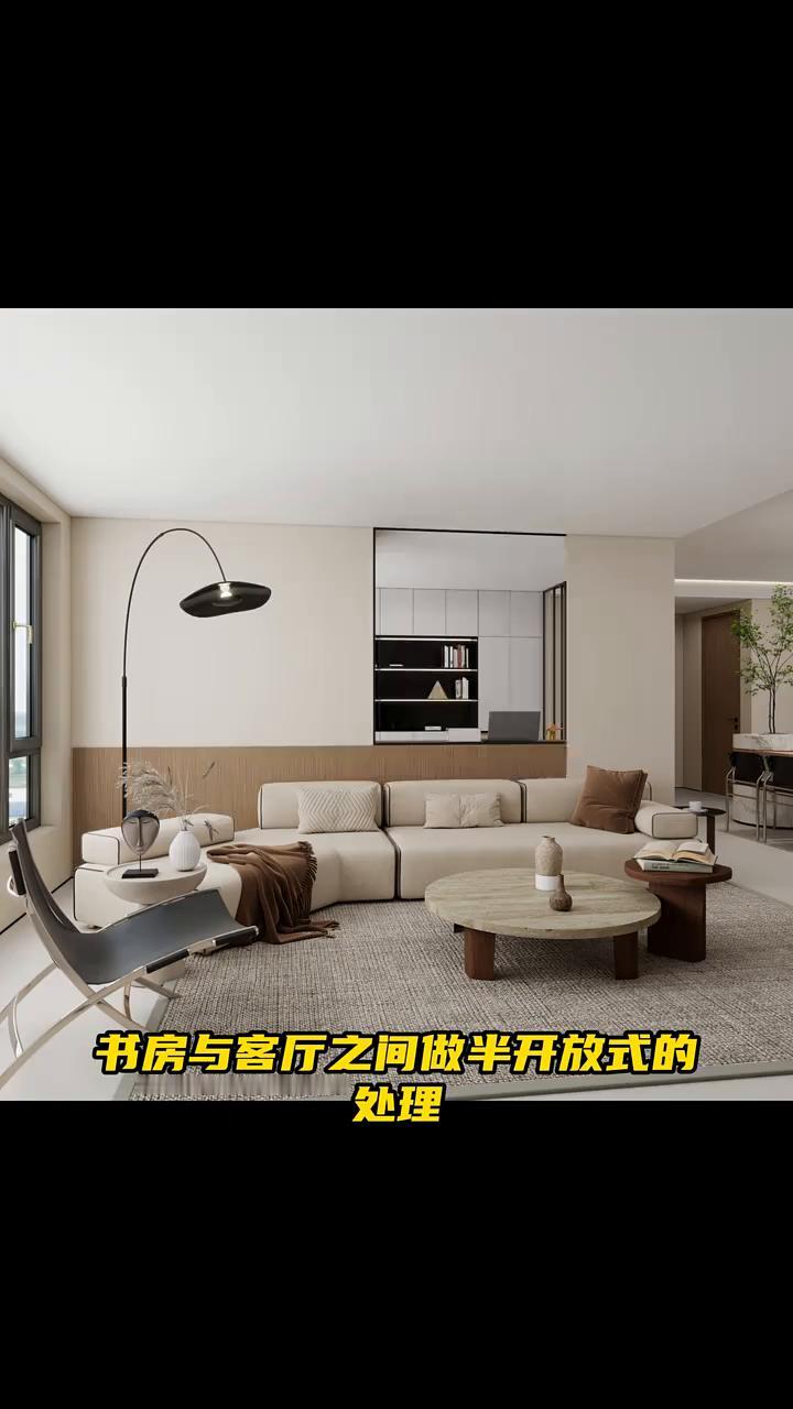 ·书房与客厅之间做半开放式的处理,使客厅、餐厅、书房通一起,空间大气宽敞。