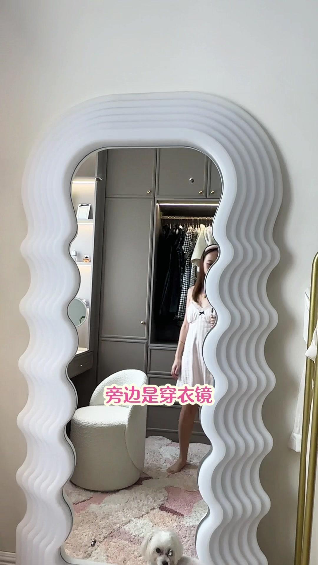 1️⃣衣帽间9.5平米,进门右边是放次净衣的衣架,旁边是穿衣镜。