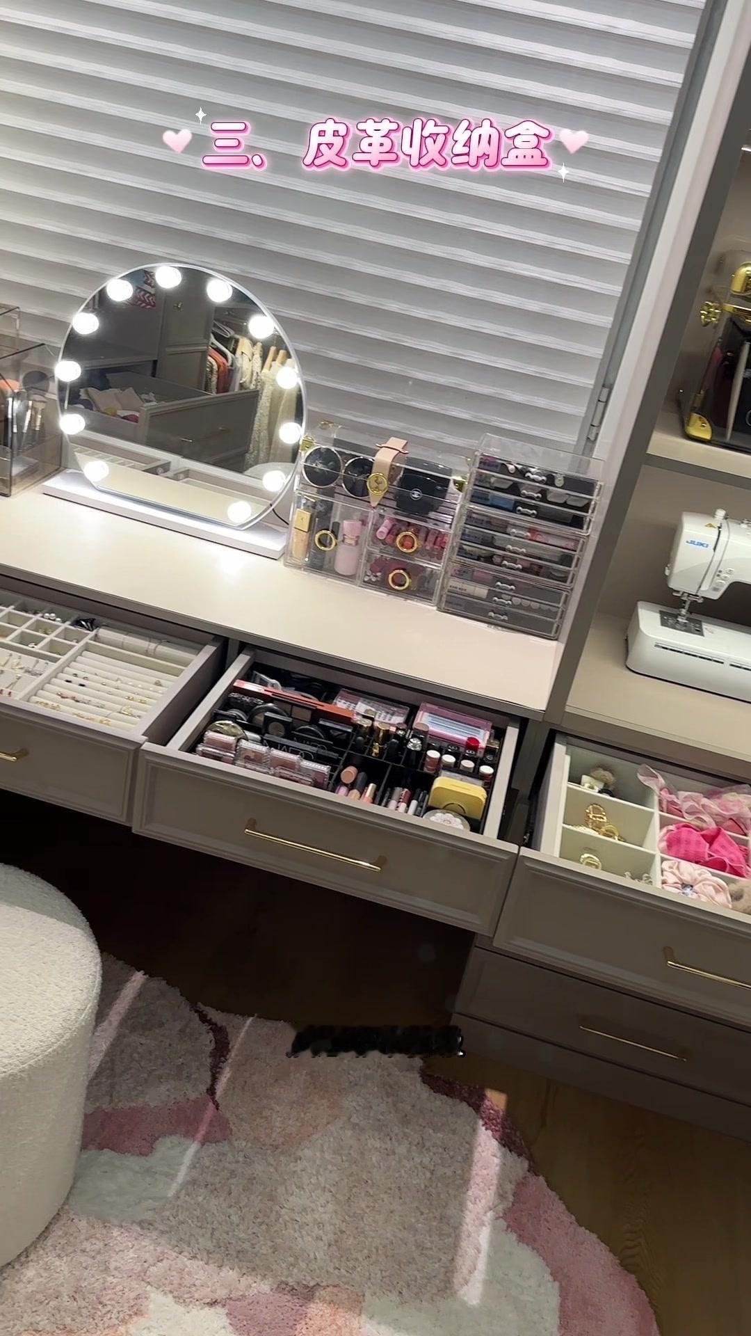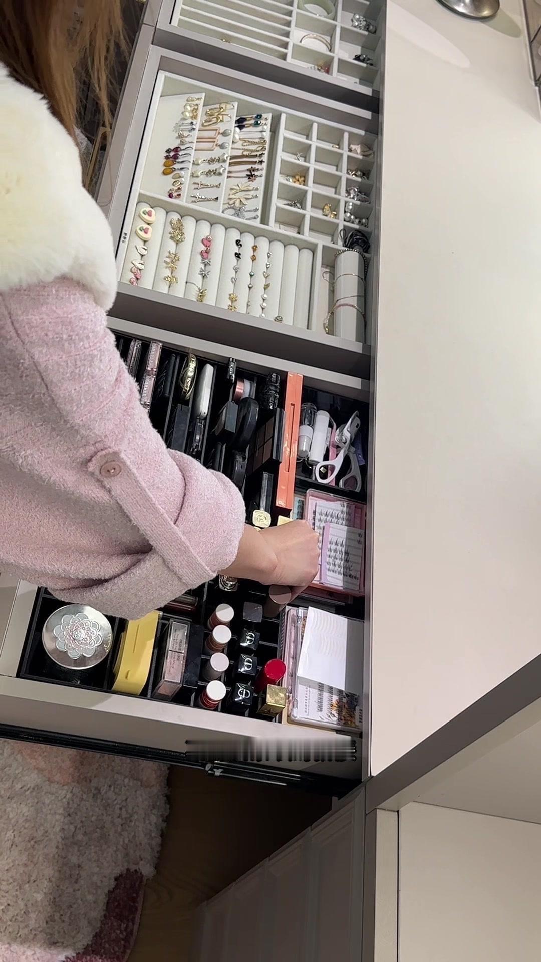 📍梳妆台抽屉放了化妆品,建议大家不要选拼插的,容易断裂,时间长了断一根都没法补货。