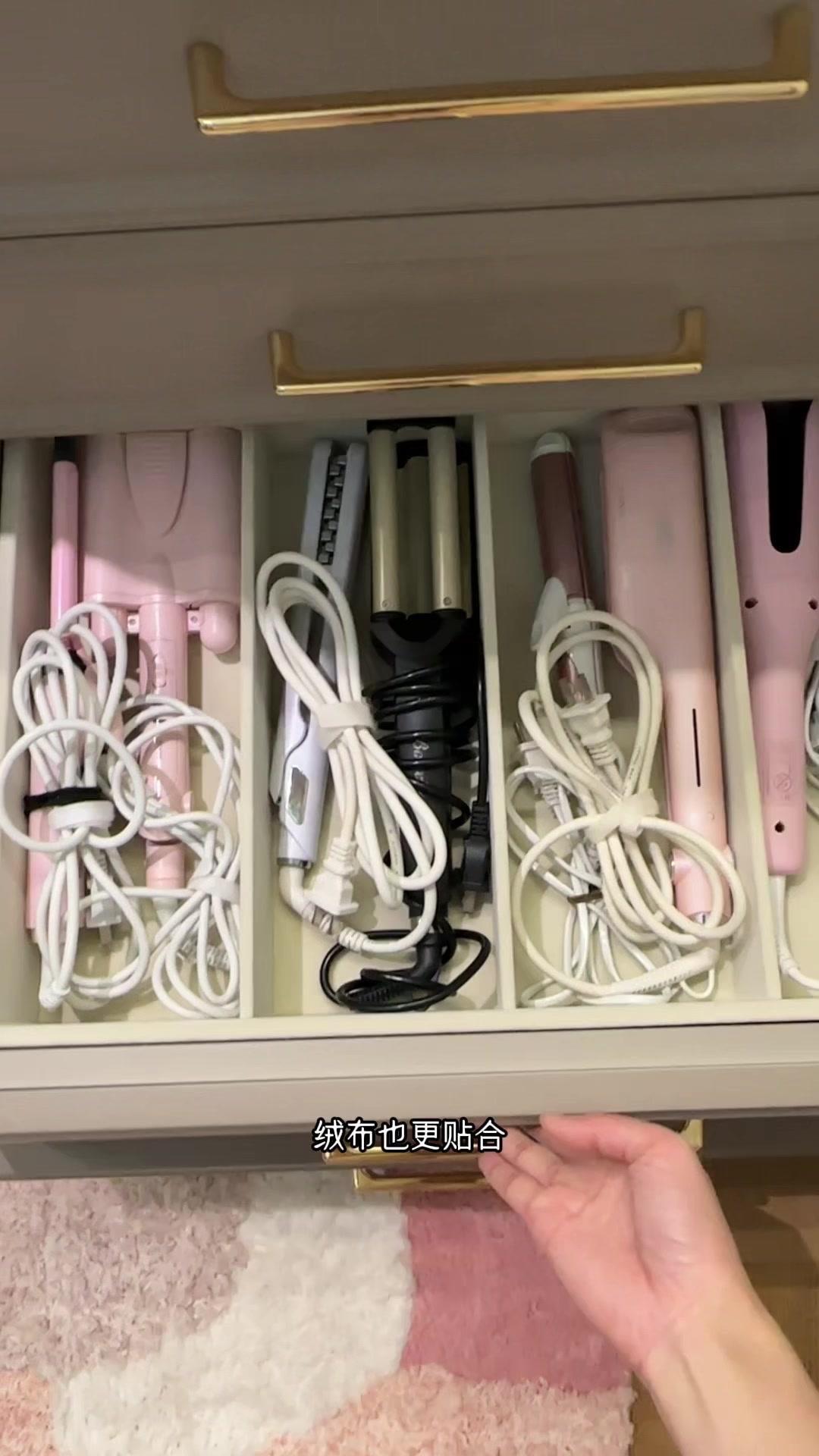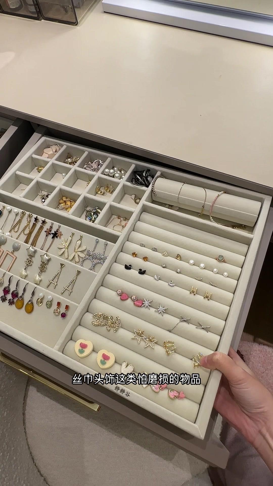 📍植绒质地柔软,适合放首饰、丝巾、头饰这类怕磨损的物品。