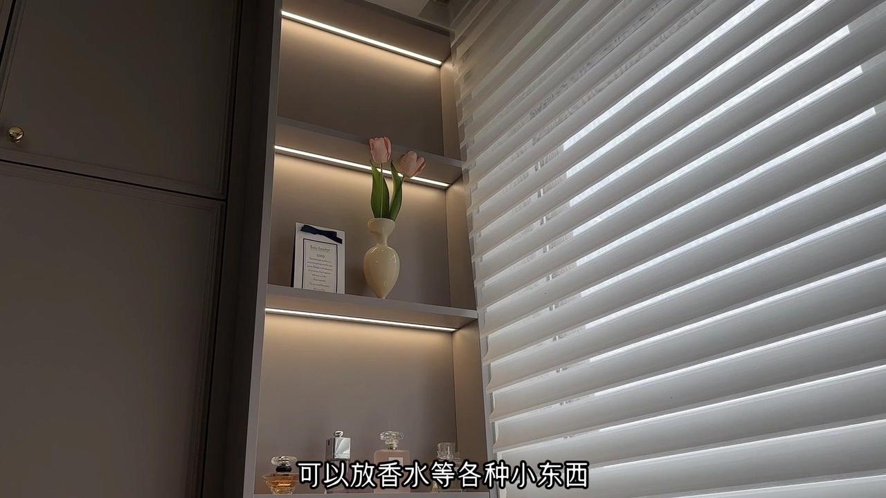 5️⃣梳妆台左侧做的开放格,可以放香水等各种小东西,深度可以根据不同的格局做调整。