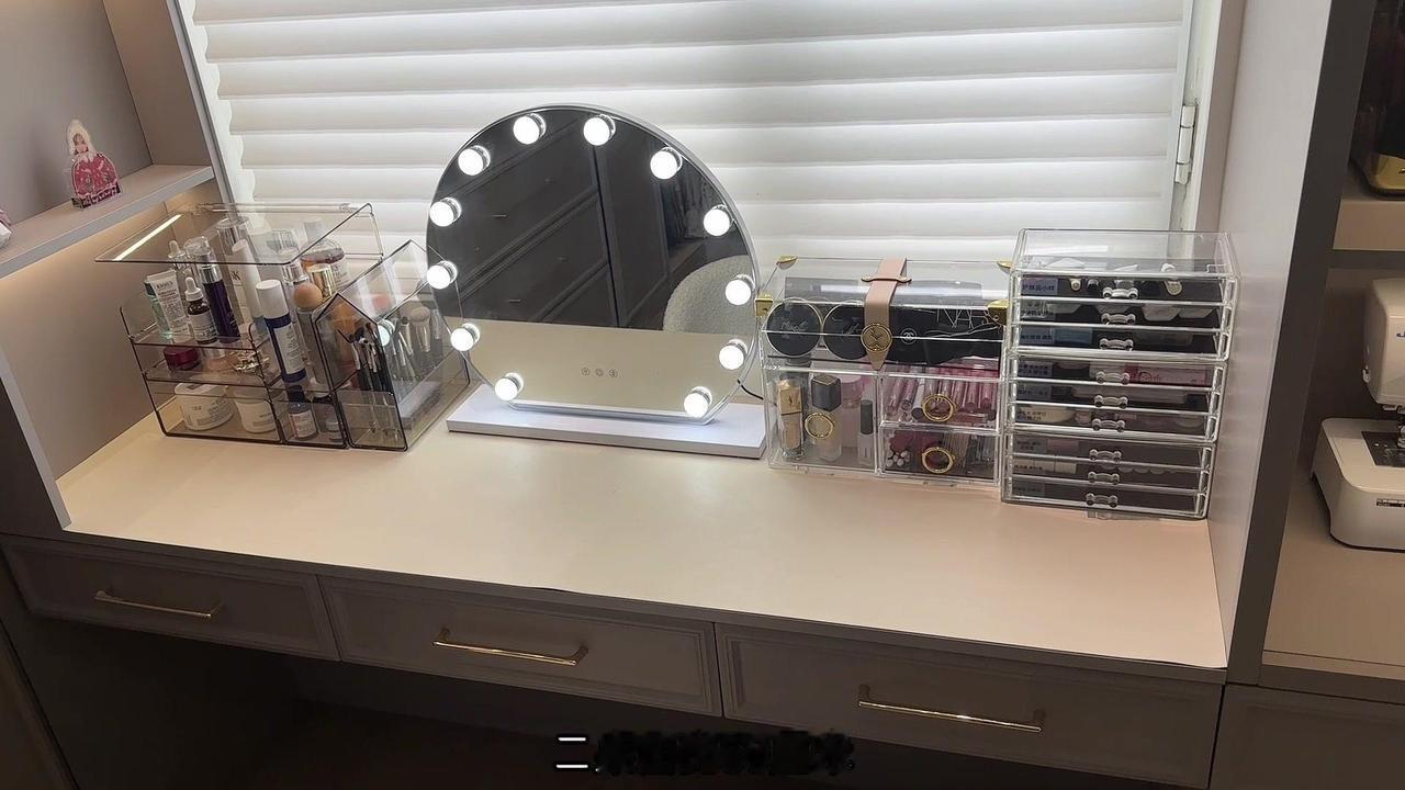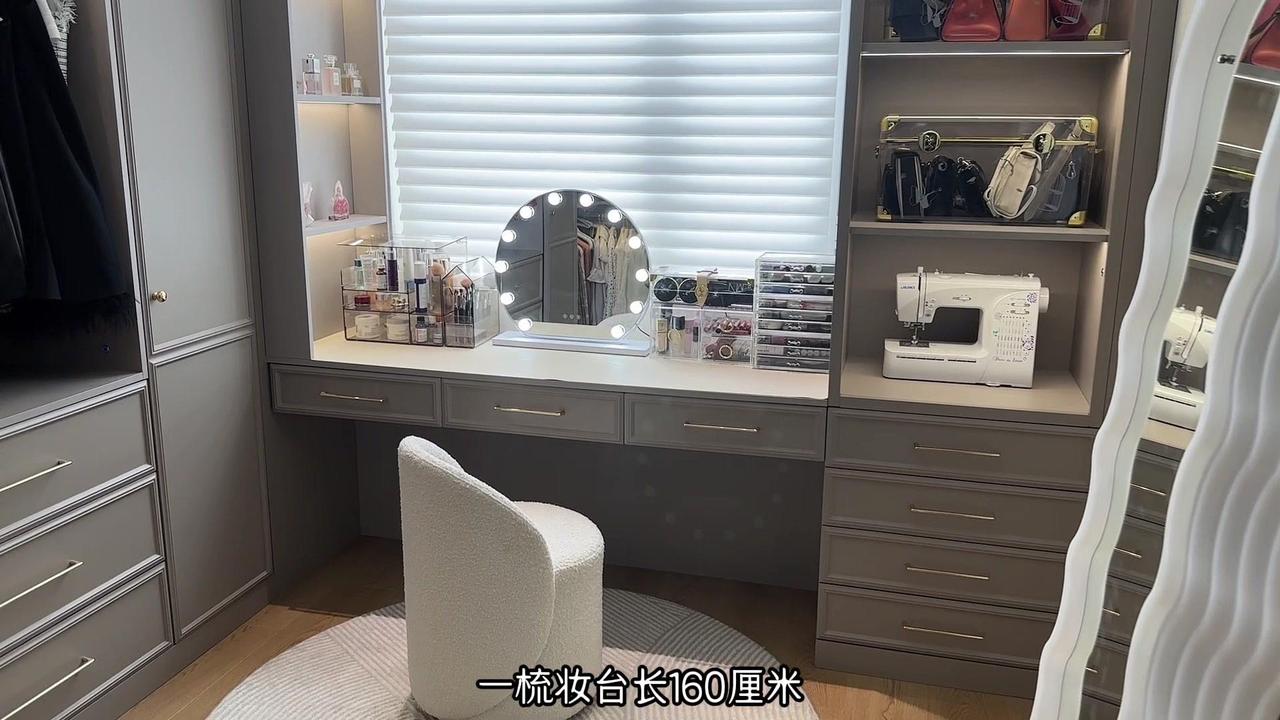 1️⃣梳妆台长160厘米,各种护肤品、化妆品收纳盒、镜子都可以放得下,用起来非常舒适。