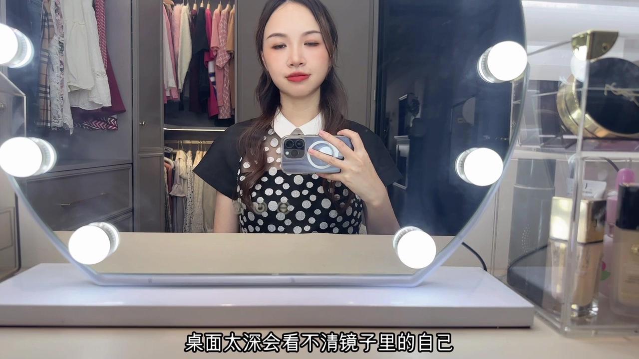 2️⃣桌面宽50厘米,桌面太深会看不清镜子里的自己,这个尺寸刚刚好,放了收纳盒,剩余空间也够用。