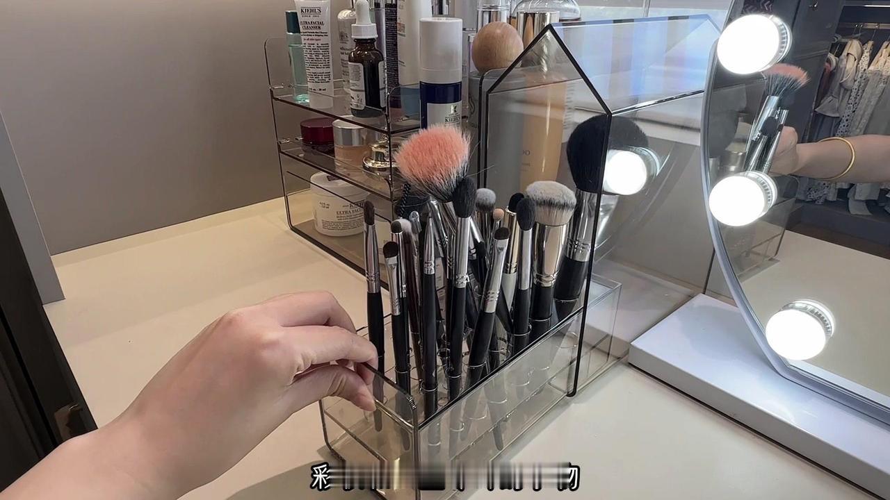6️⃣桌面上放了用着顺手的收纳盒,分别放了护肤品、化妆刷、彩妆和一些零碎的小物,因为有了适合的收纳盒,桌面才能这么整洁,并且什么都能找到。