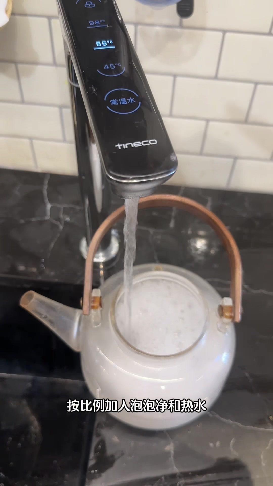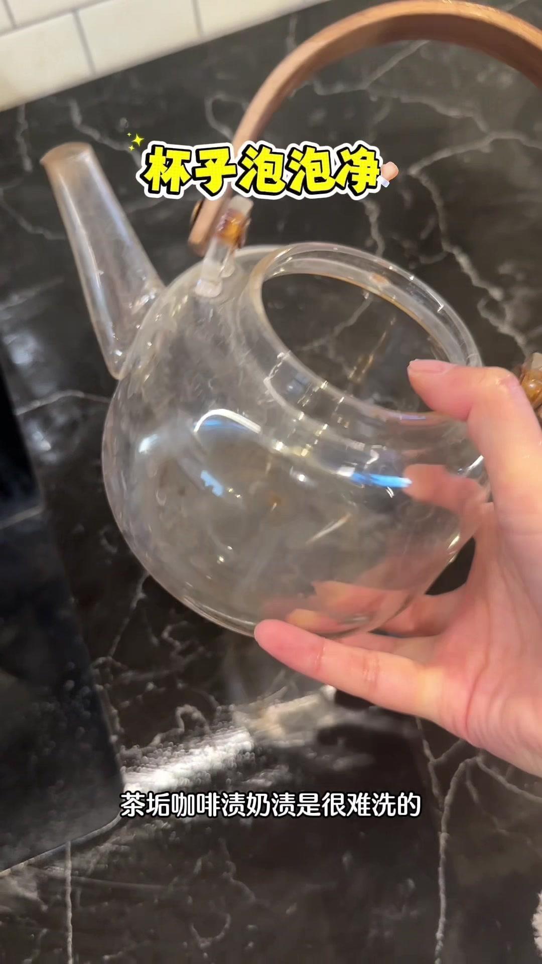 🍽️杯子泡泡净:茶垢咖啡渍奶渍最难洗,它完全不用动手。按比例加入泡泡净和热水,容器别加满,会冒泡分解污垢,茶垢自己浮出来,保温杯死角也能搞定,冲完光洁如新。