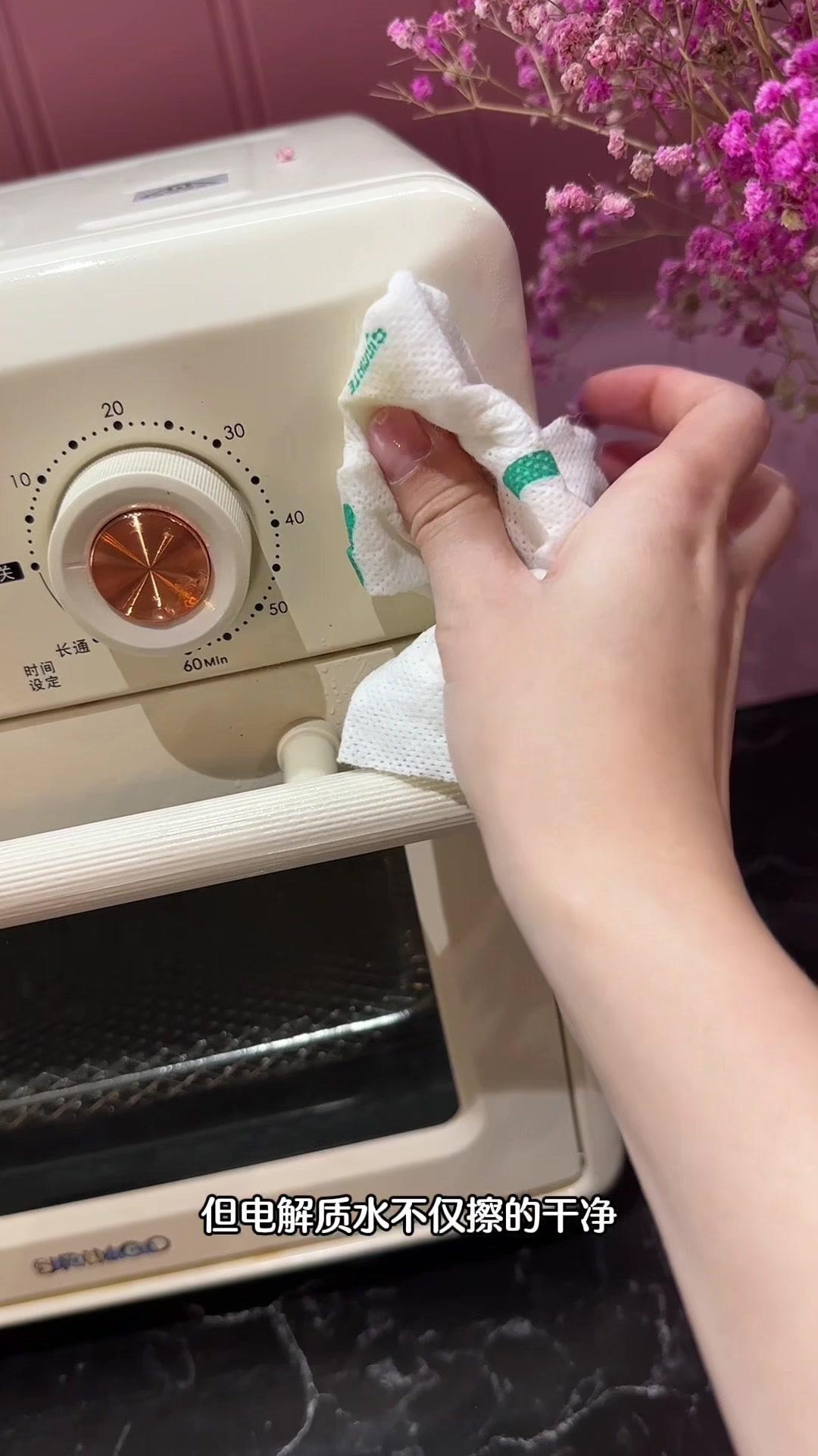 💧电解质水:成分只有水,电解后形成,无色无味无残留,安全不刺激。清洁冰箱烤箱微波炉这类接触食物的空间正合适,擦餐桌油污、冰箱门手印都好用,没有化学残留不用担心腐蚀。
